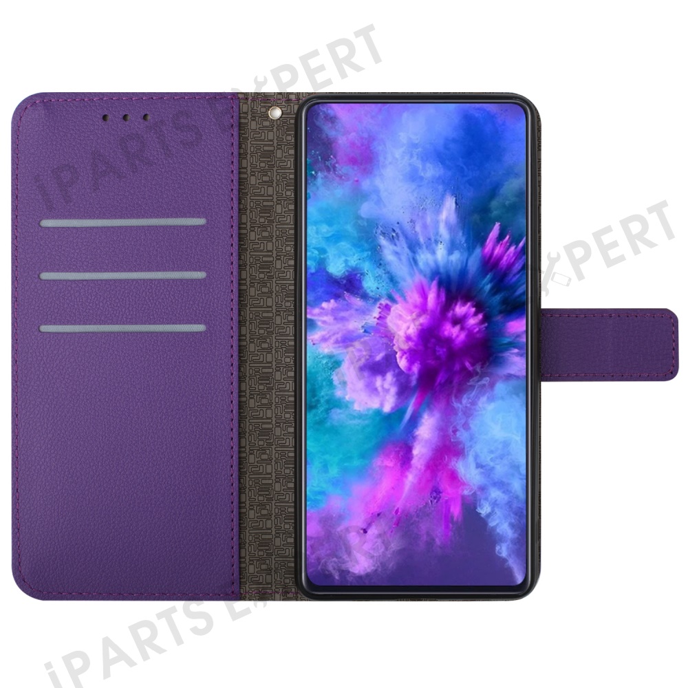 For Xiaomi Redmi Note 14 Pro 4G Wallet Phone Case Imprint PU Leather Flip Folio Cover - Dark Purple