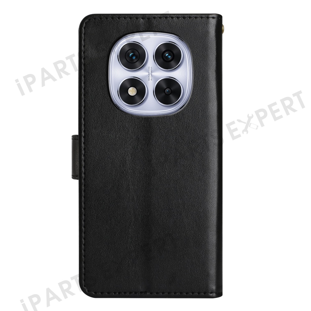 For Xiaomi Redmi Note 14 Pro+ 5G Case PU Leather Phone Wallet Cover with Strap - Black