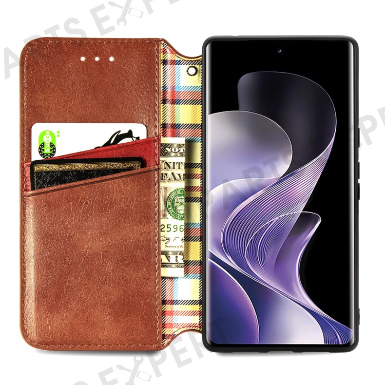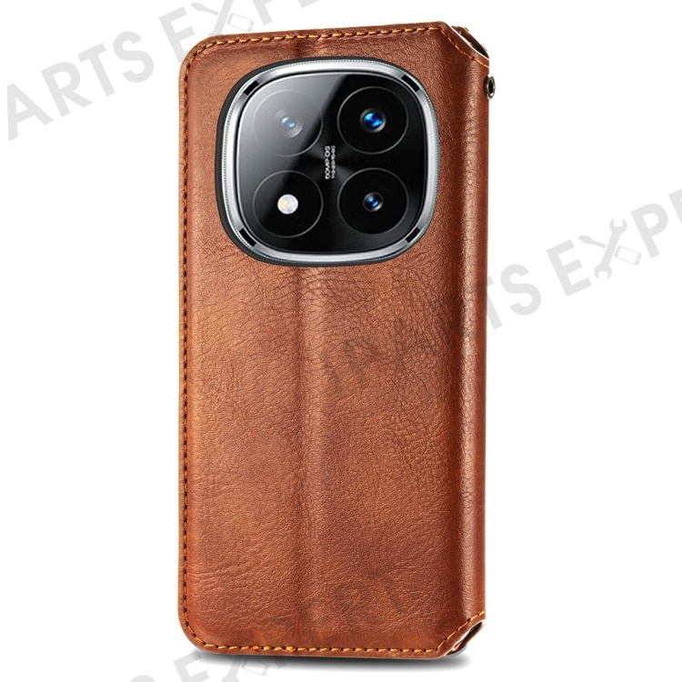 For Xiaomi Redmi Note 14 Pro+ 5G PU Leather Case Rhombus Imprint Wallet Stand Phone Cover - Brown