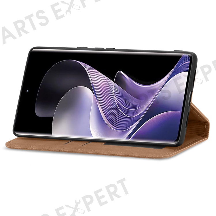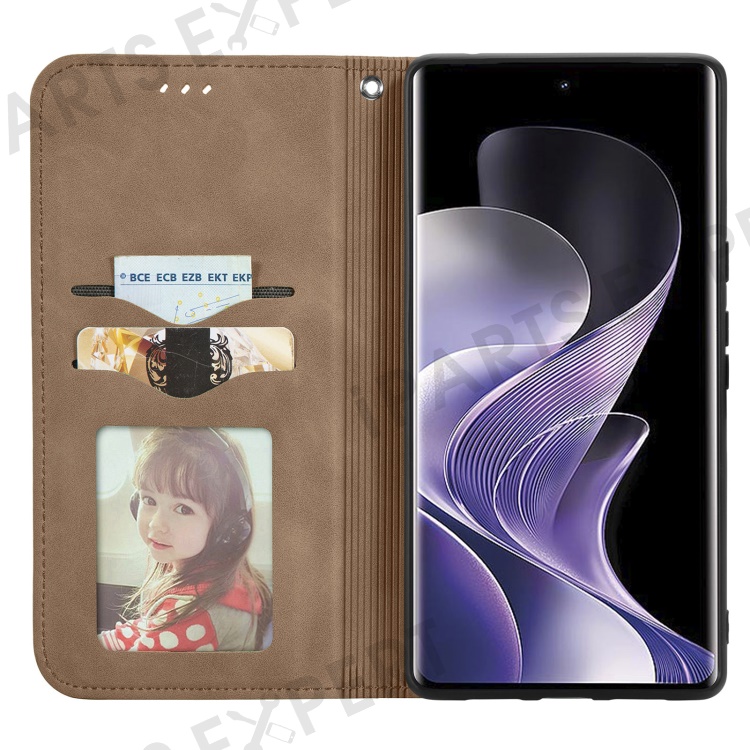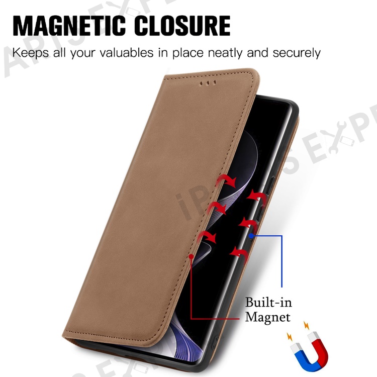 For Xiaomi Redmi Note 14 Pro+ 5G Case Skin Touch Feeling Leather Card Holder Phone Cover Magnetic Absorption - Brown