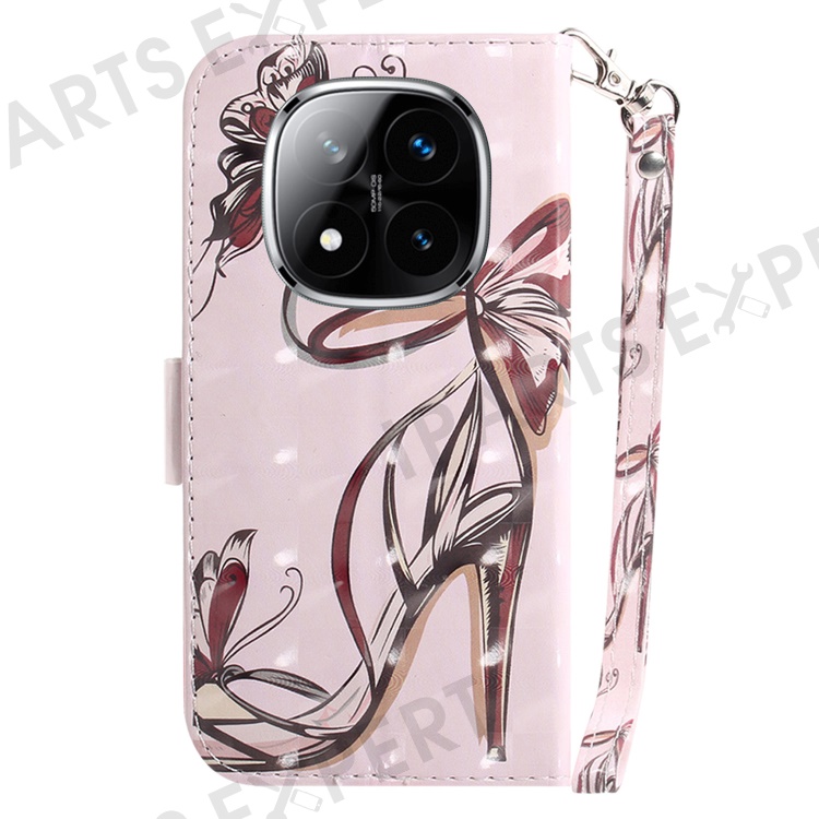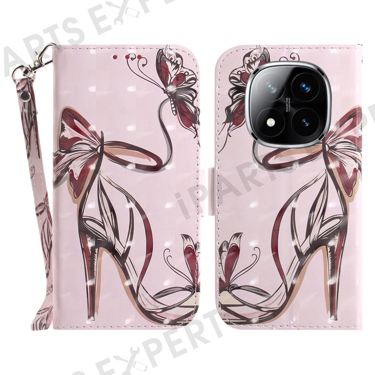 For Xiaomi Redmi Note 14 Pro 5G / Poco X7 5G Case Pattern Printing Leather Wallet Phone Cover with Wrist Strap - Butterfly High Heels