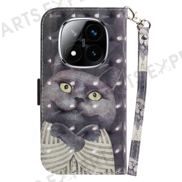 For Xiaomi Redmi Note 14 Pro 5G / Poco X7 5G Case Pattern Printing Leather Wallet Phone Cover with Wrist Strap - Embracing Cat