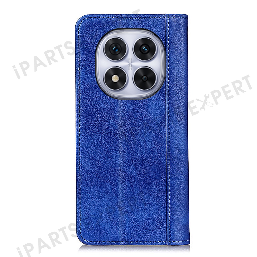 For Xiaomi Redmi Note 14 Pro 5G / Poco X7 5G Stand Case Split Leather Litchi Texture Wallet Phone Cover - Blue