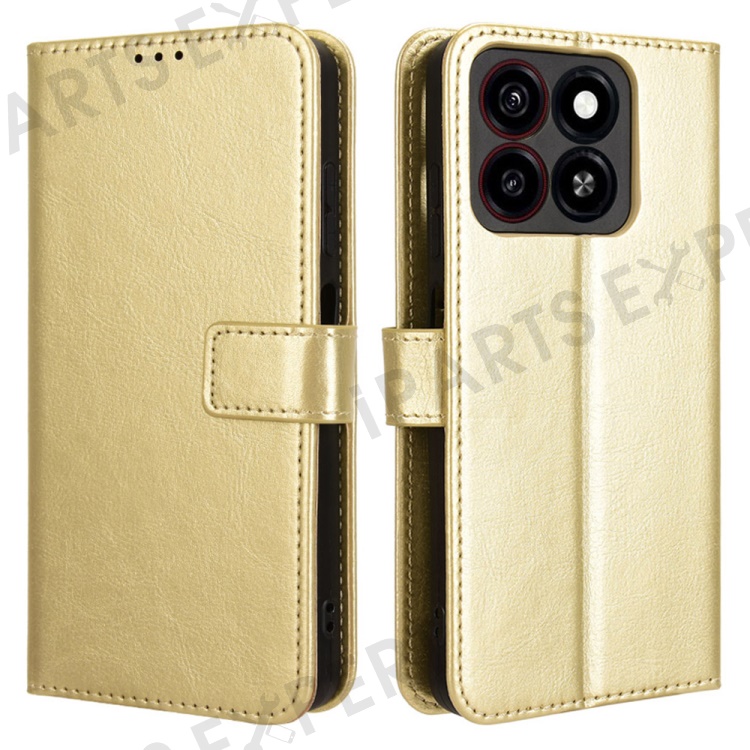 For ZTE Blade A35 / A55 Case Crazy Horse Texture PU Leather Phone Wallet Cover - Gold