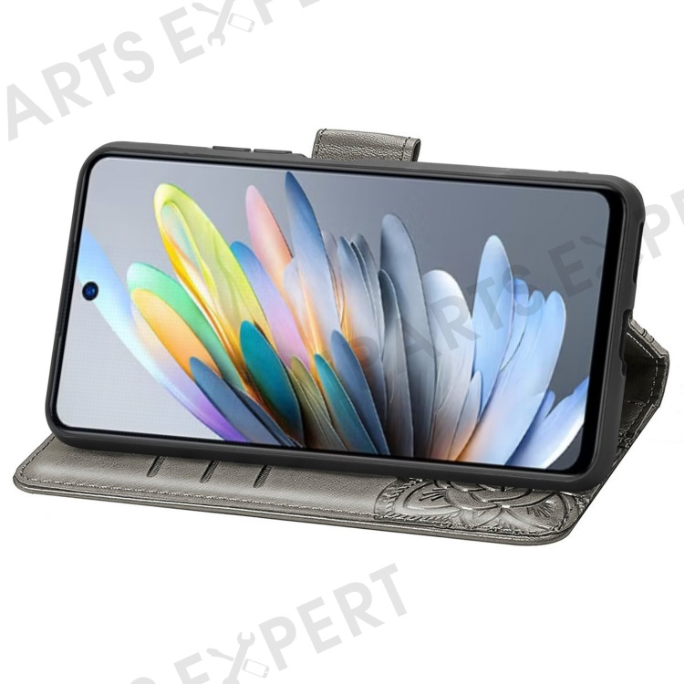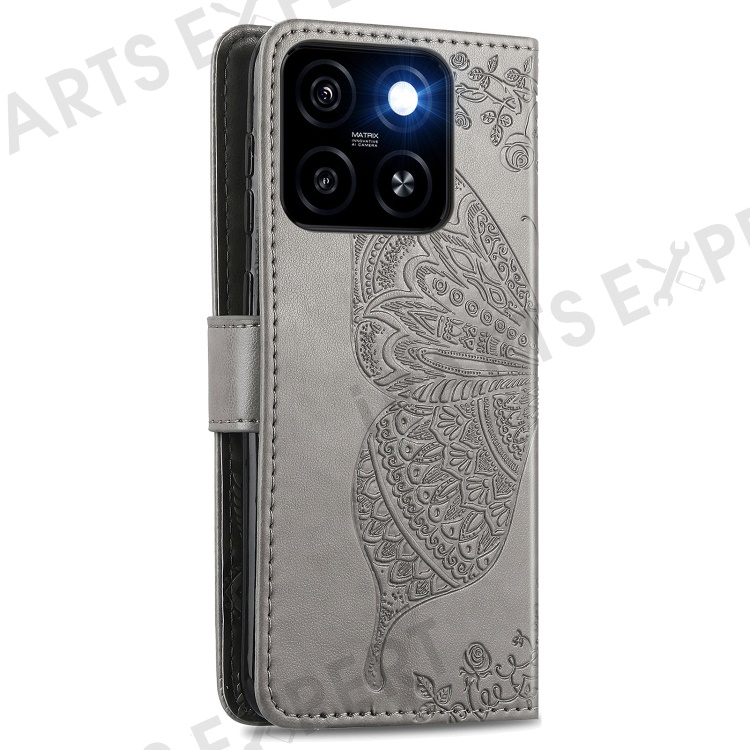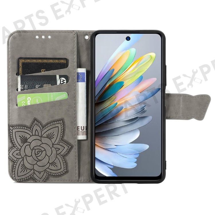 For ZTE Blade A55 Case PU Leather Wallet Phone Cover Butterfly Pattern - Grey