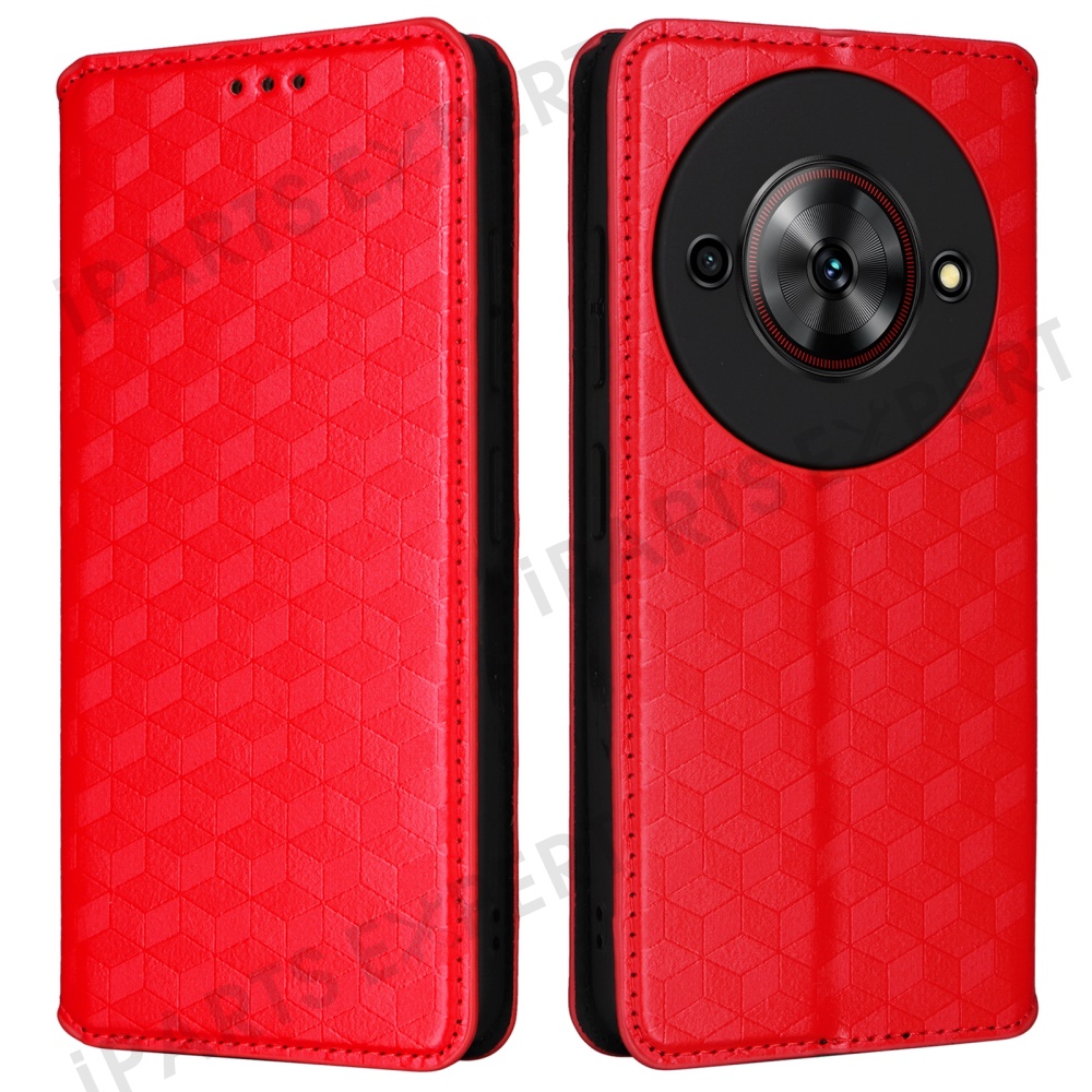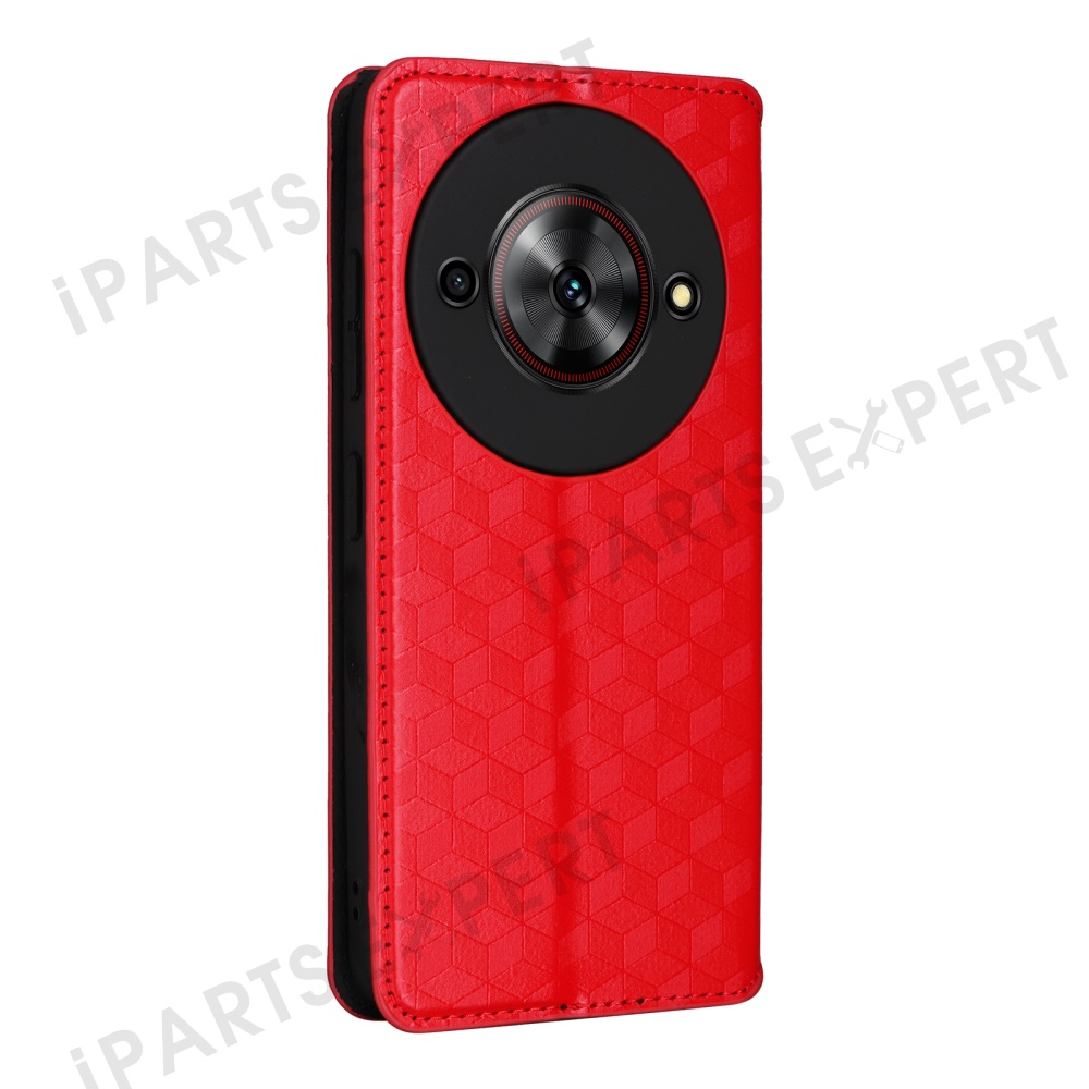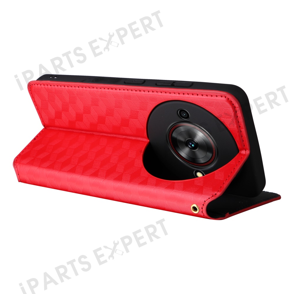 For ZTE Blade A75 5G / nubia Focus Wallet Case Rhombus Imprinted Leather Phone Cover - Red