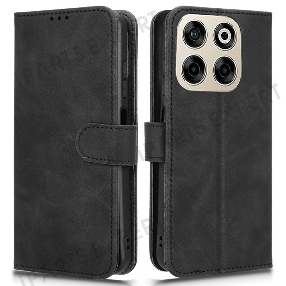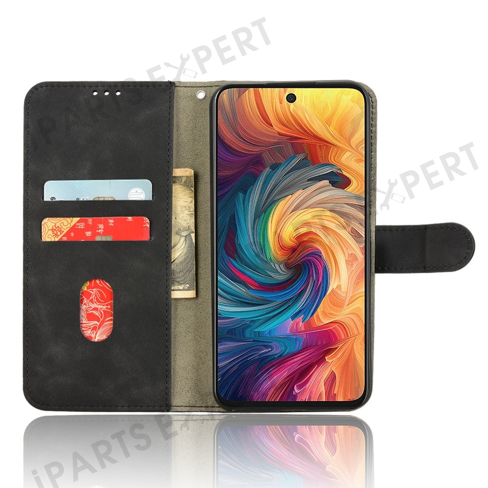 For ZTE Blade V70 Leather Case Skin Feel Anti Drop Wallet Flip Phone Cover - Black