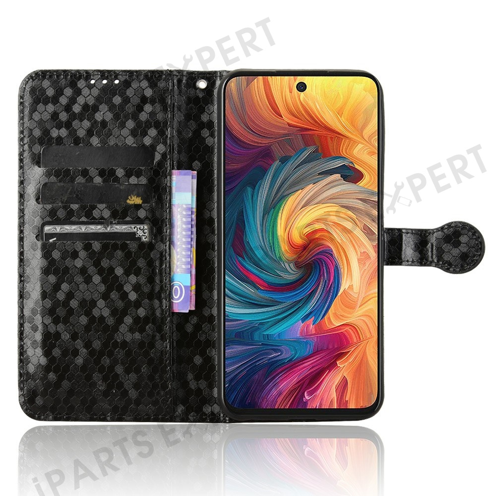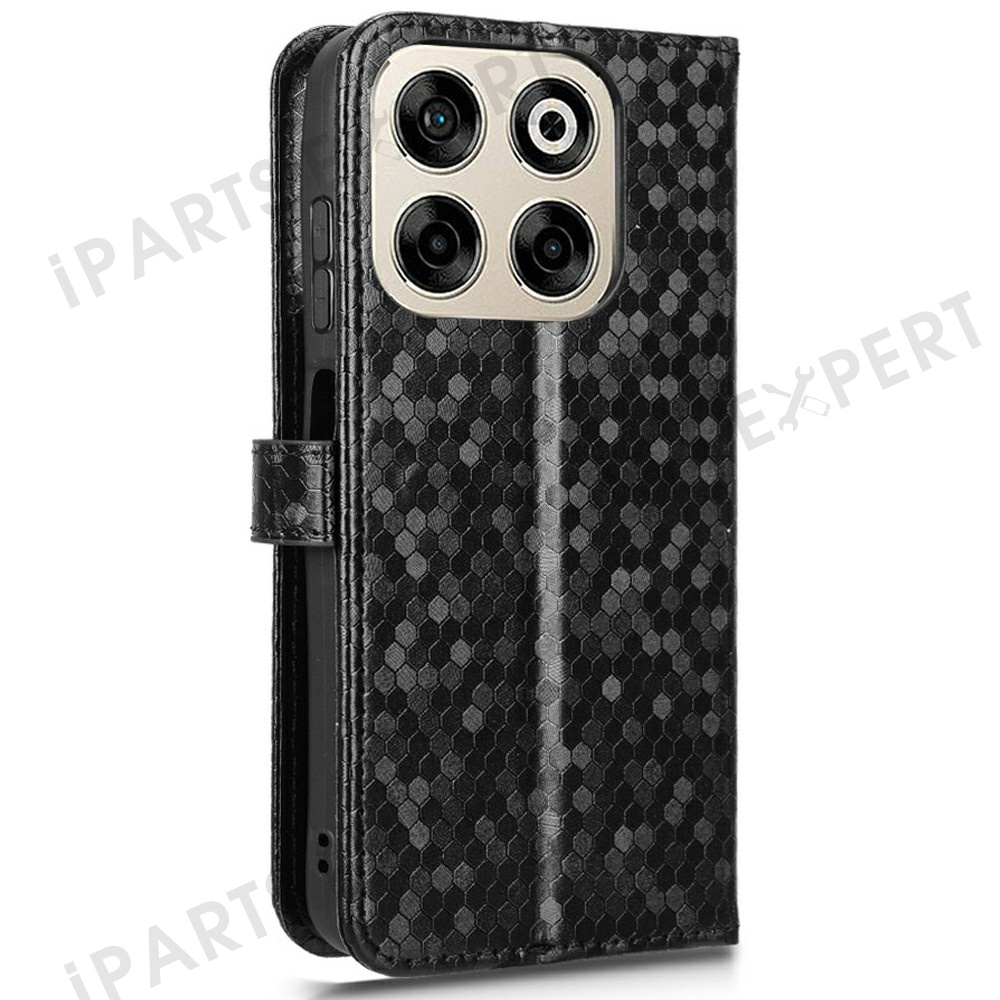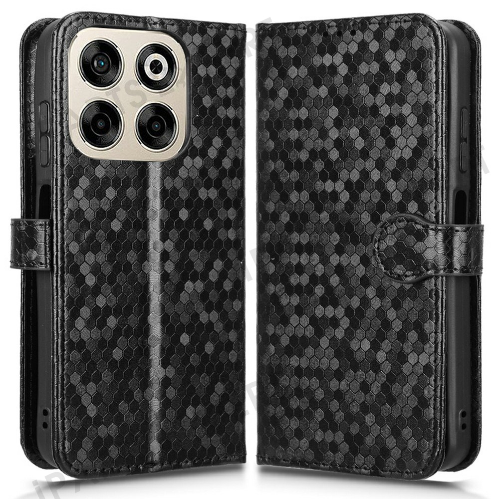 For ZTE Blade V70 Wallet Case Dot Pattern Imprint PU Leather Phone Cover - Black