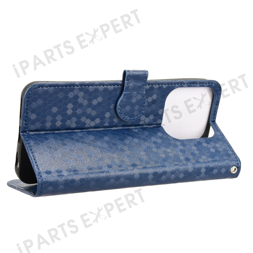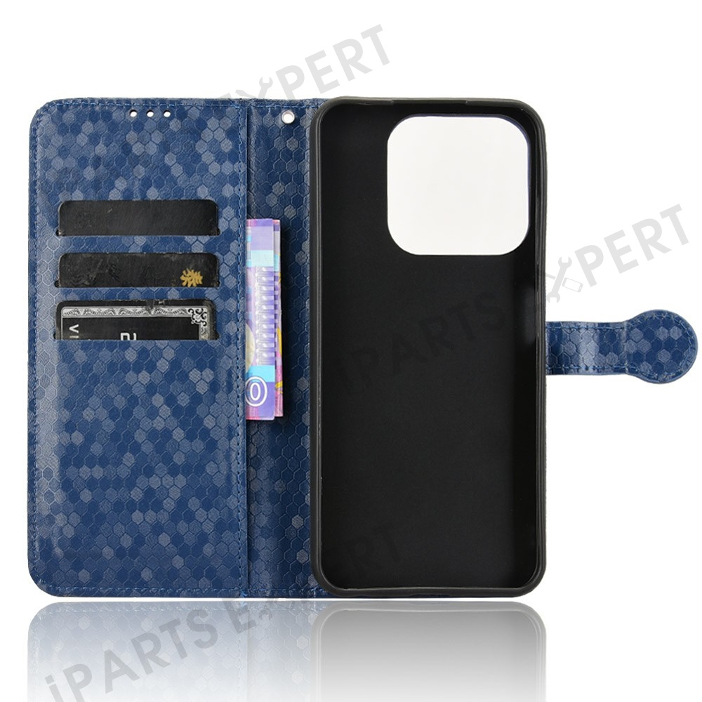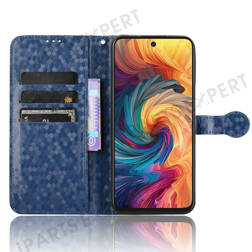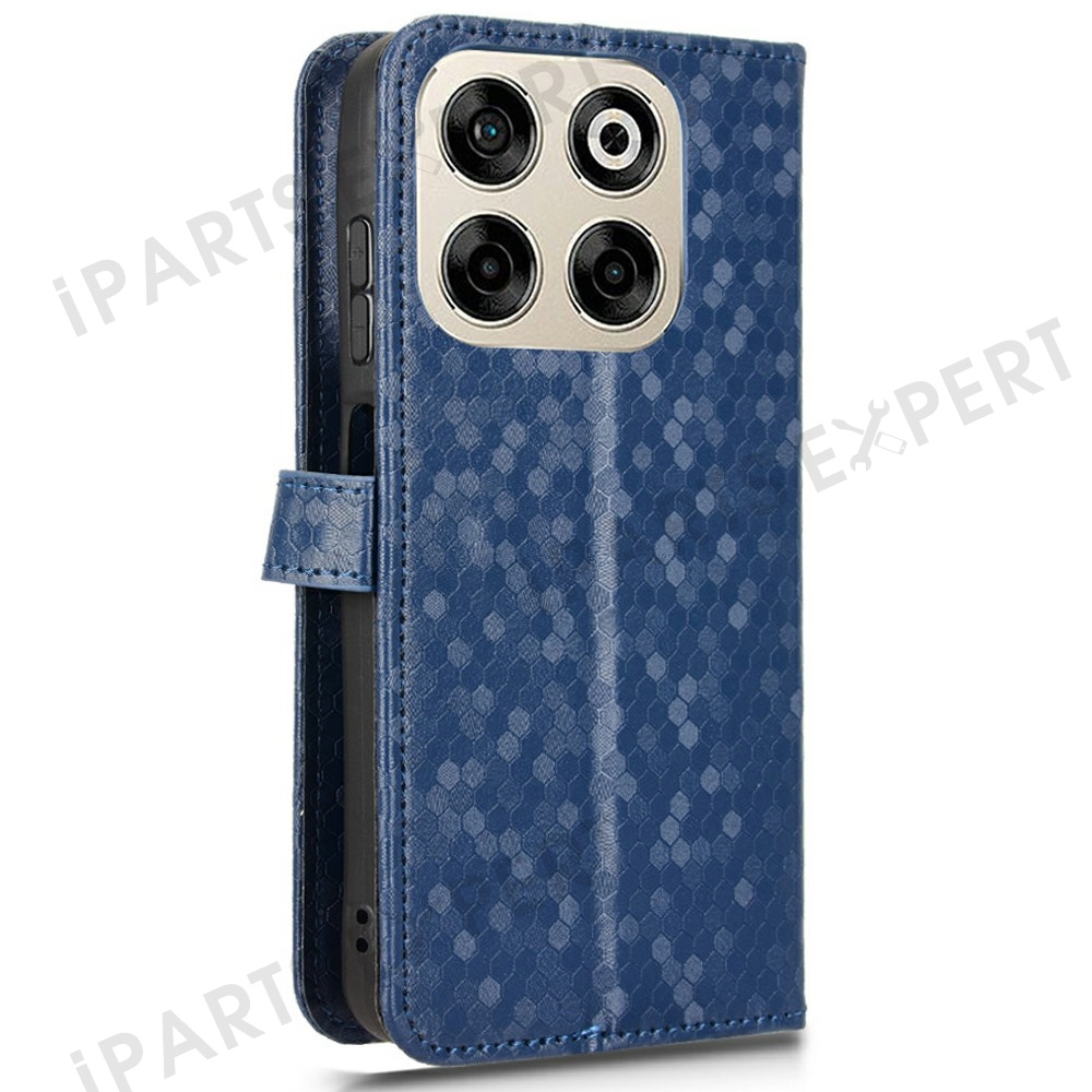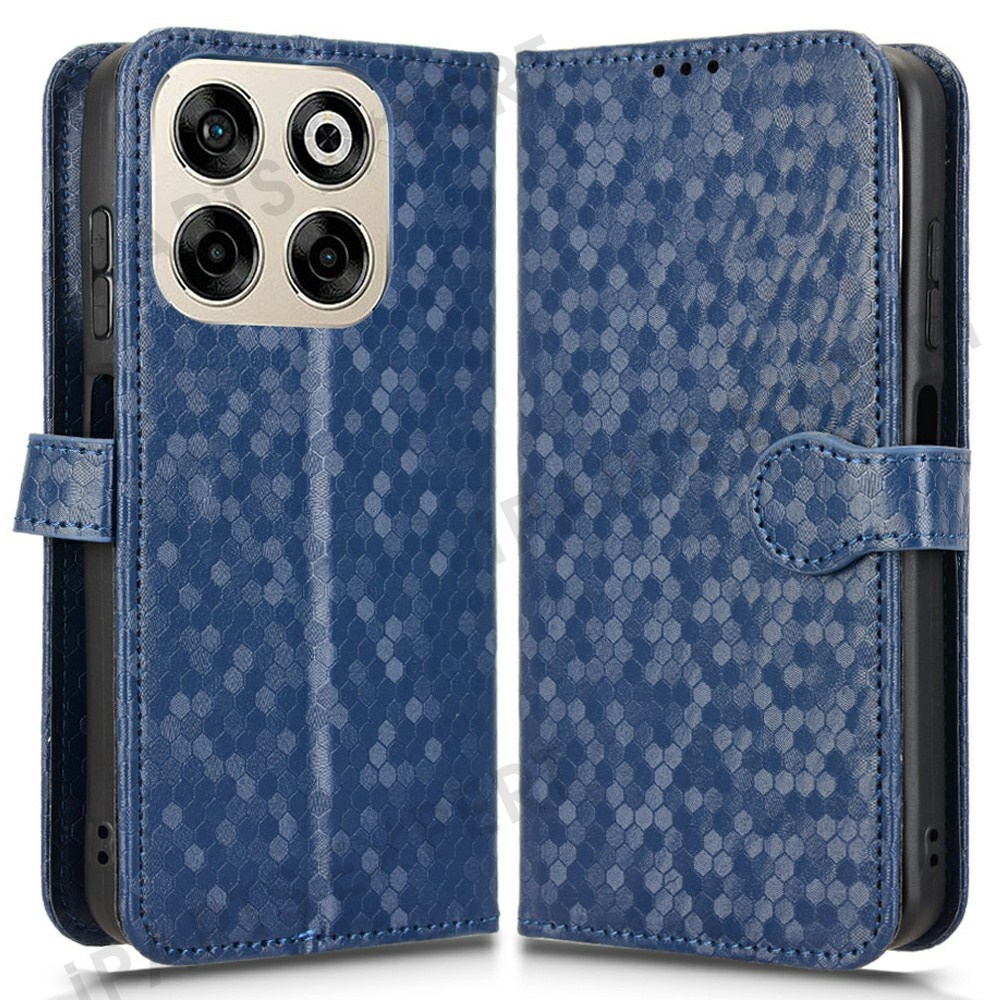 For ZTE Blade V70 Wallet Case Dot Pattern Imprint PU Leather Phone Cover - Dark Blue
