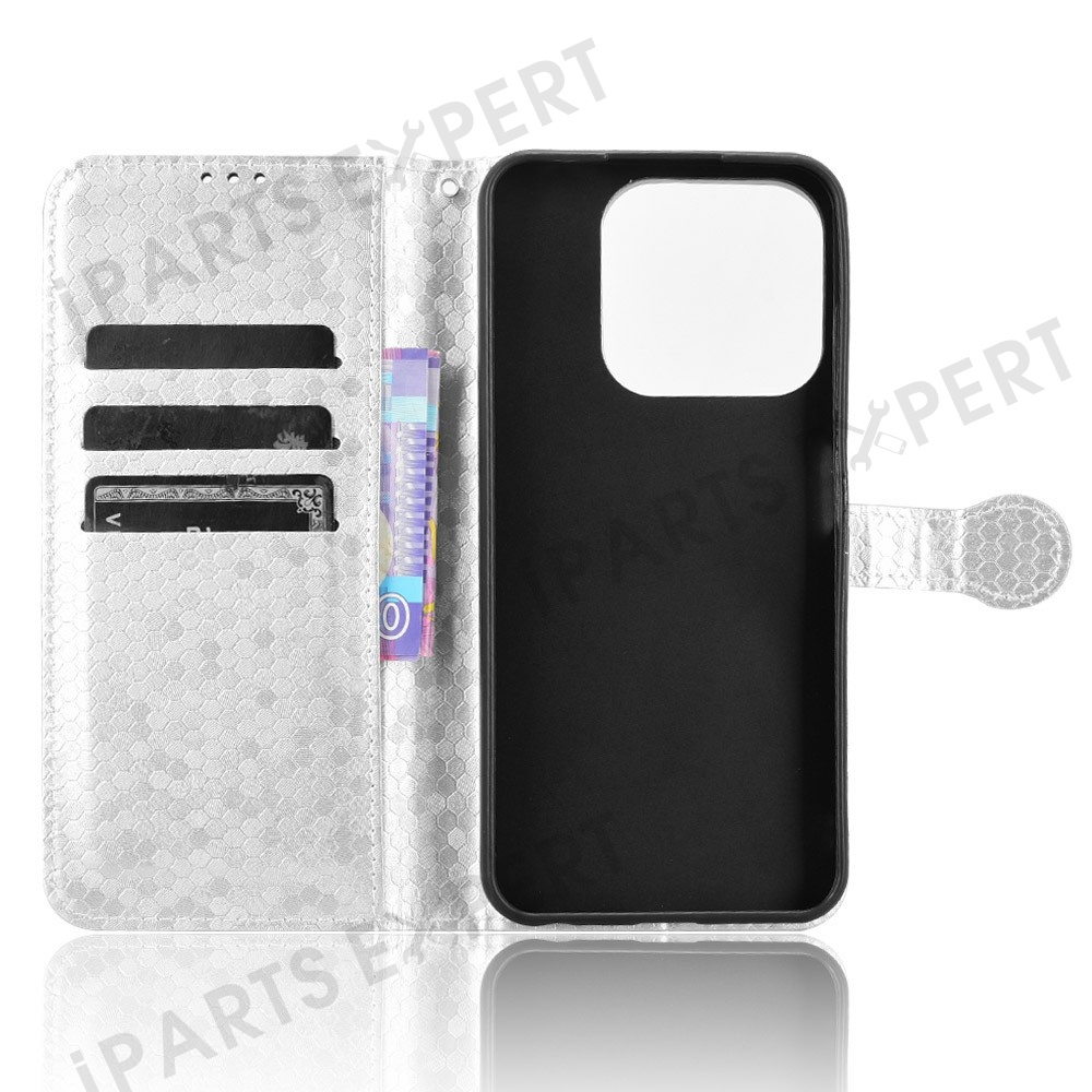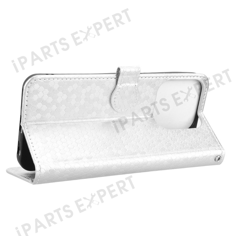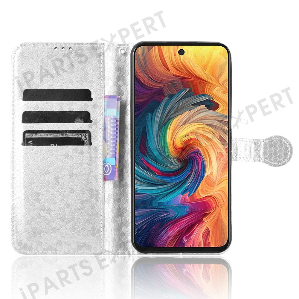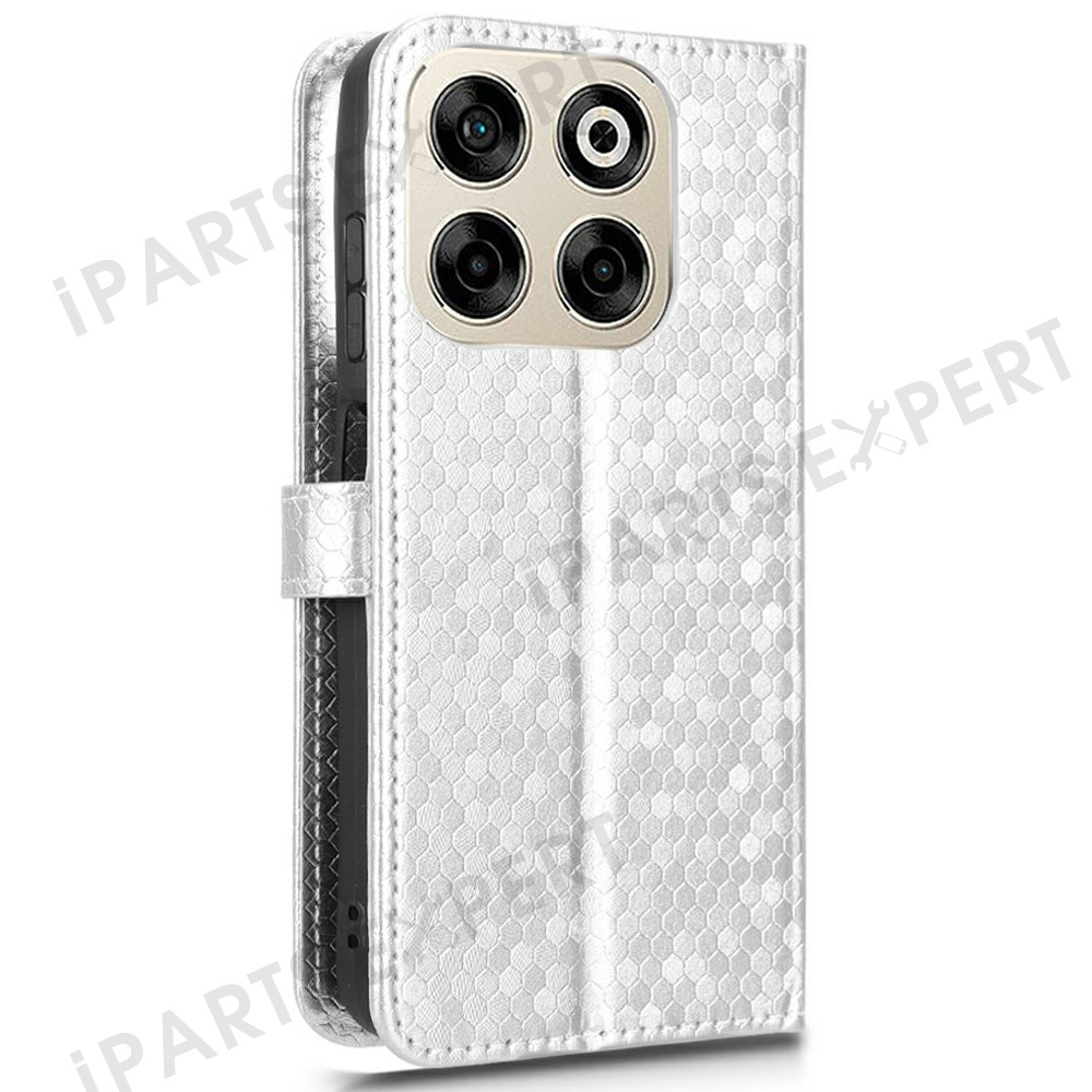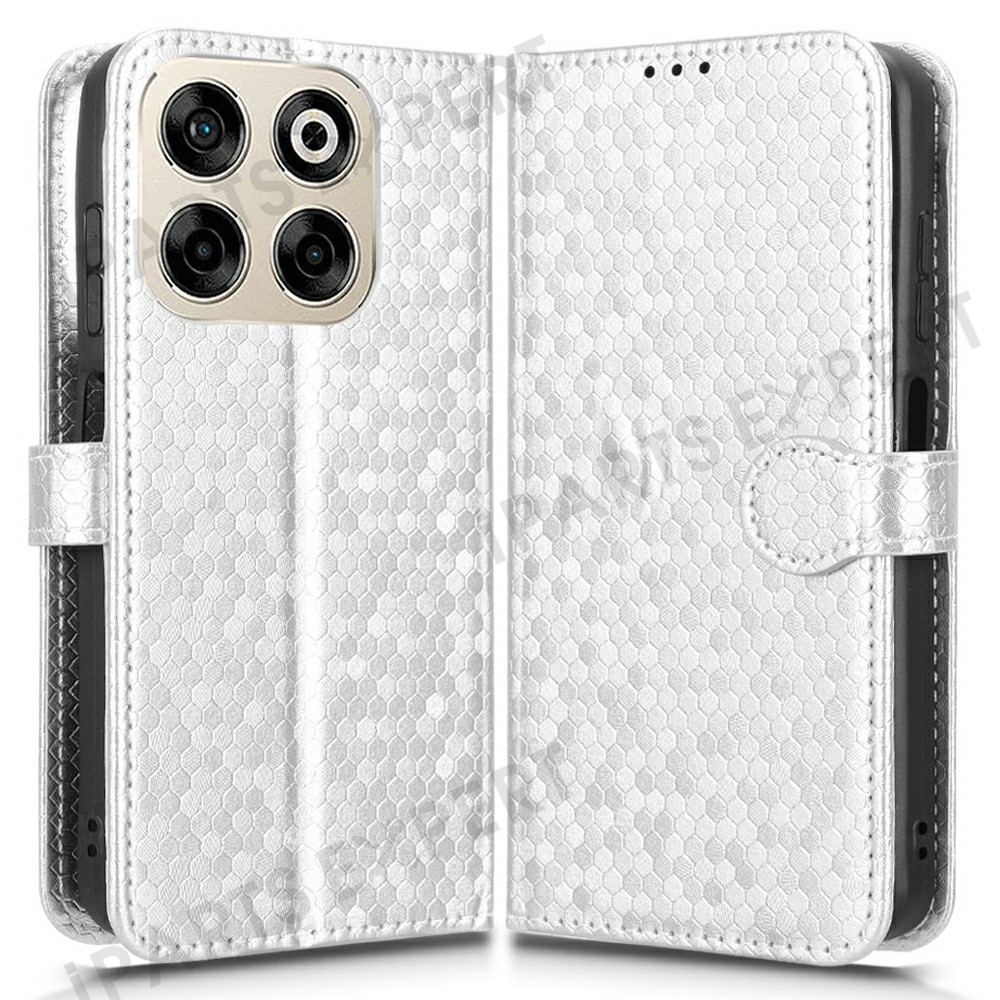 For ZTE Blade V70 Wallet Case Dot Pattern Imprint PU Leather Phone Cover - Silver