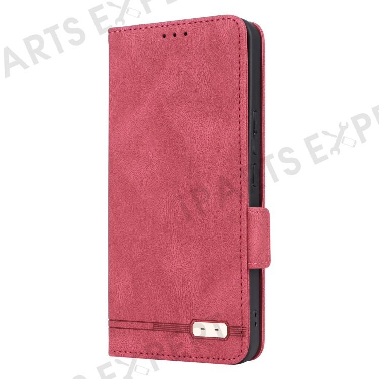 For ZTE Libero 5G III Hardware Decor Dual Magnetic Clasp Anti-fall Phone Cover Wallet Stand Anti-scratch PU Leather Phone Case - Rose