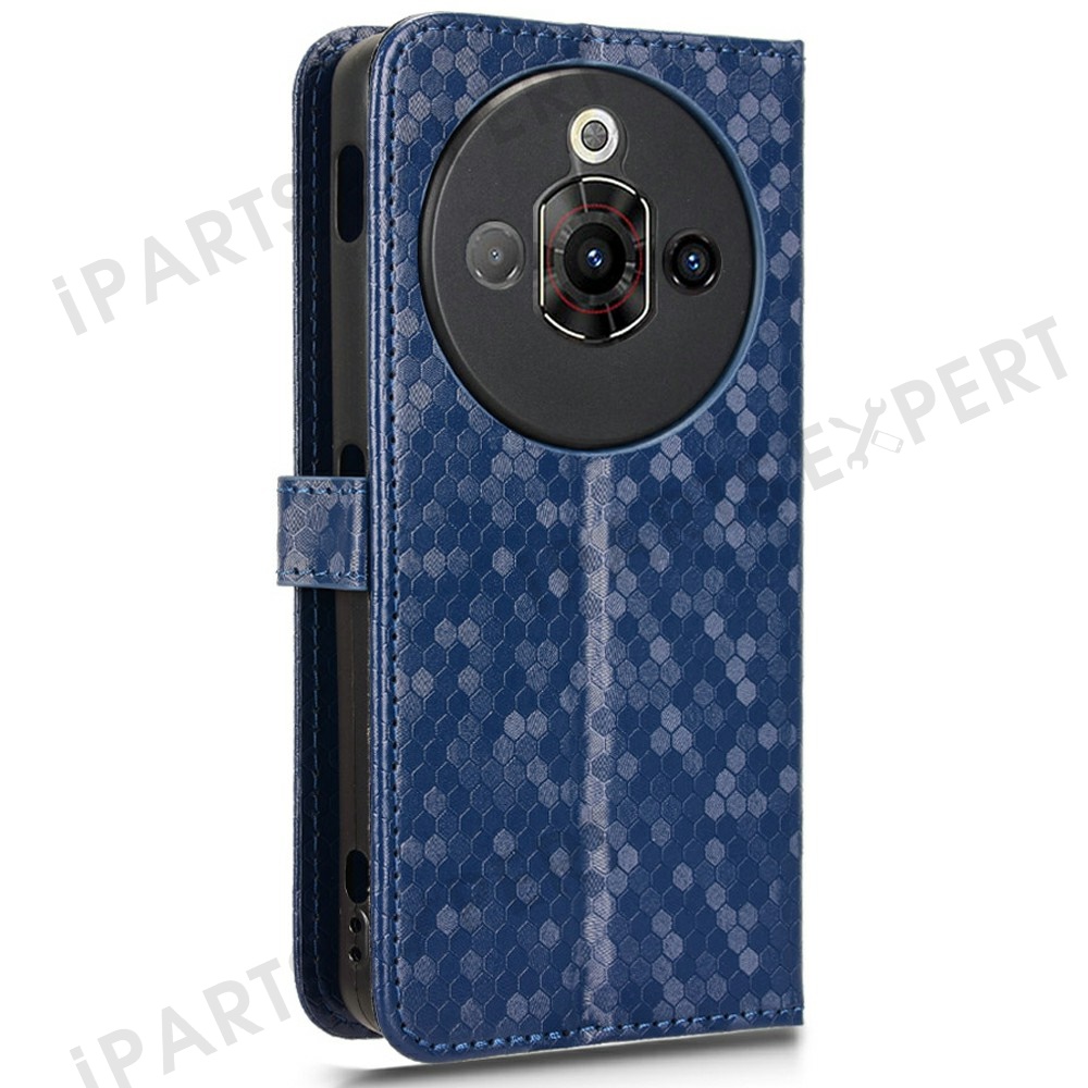 For ZTE nubia Focus Pro Wallet Case Dot Pattern Imprint PU Leather Phone Cover - Dark Blue