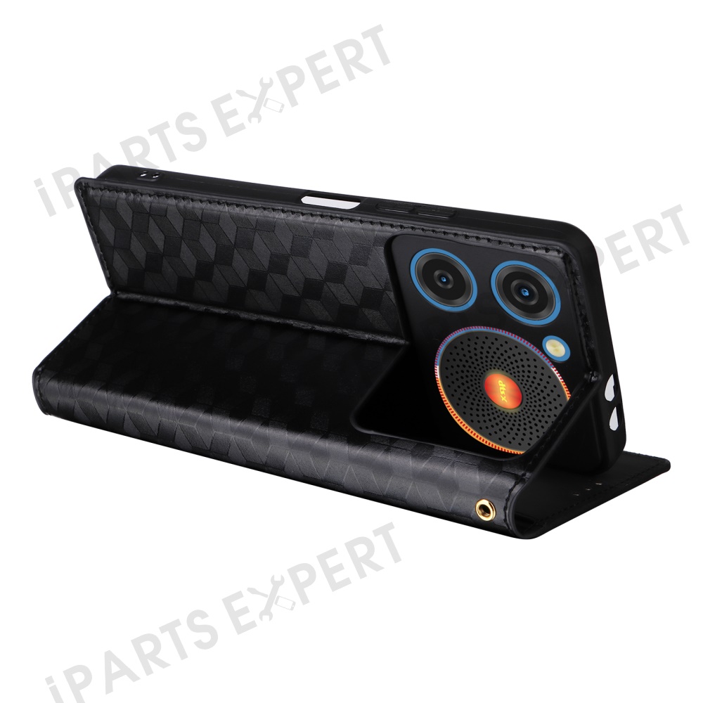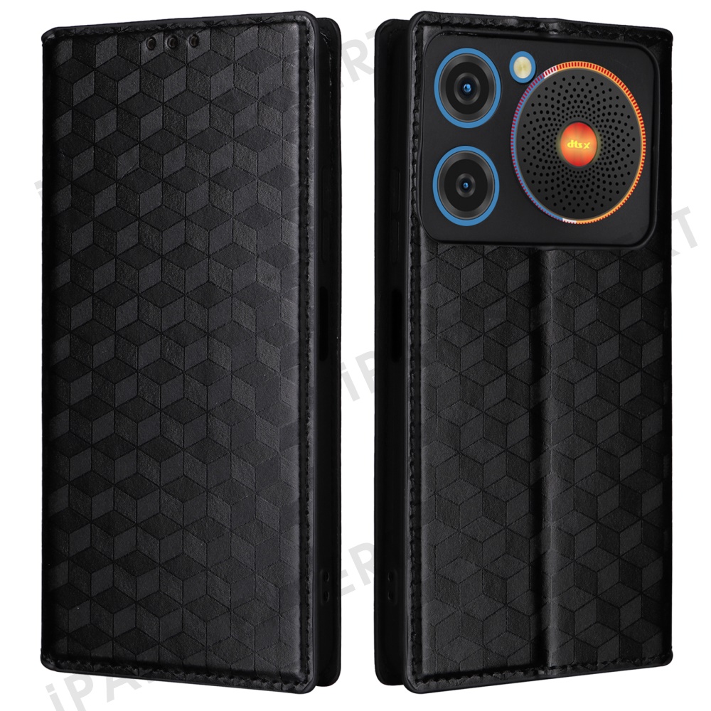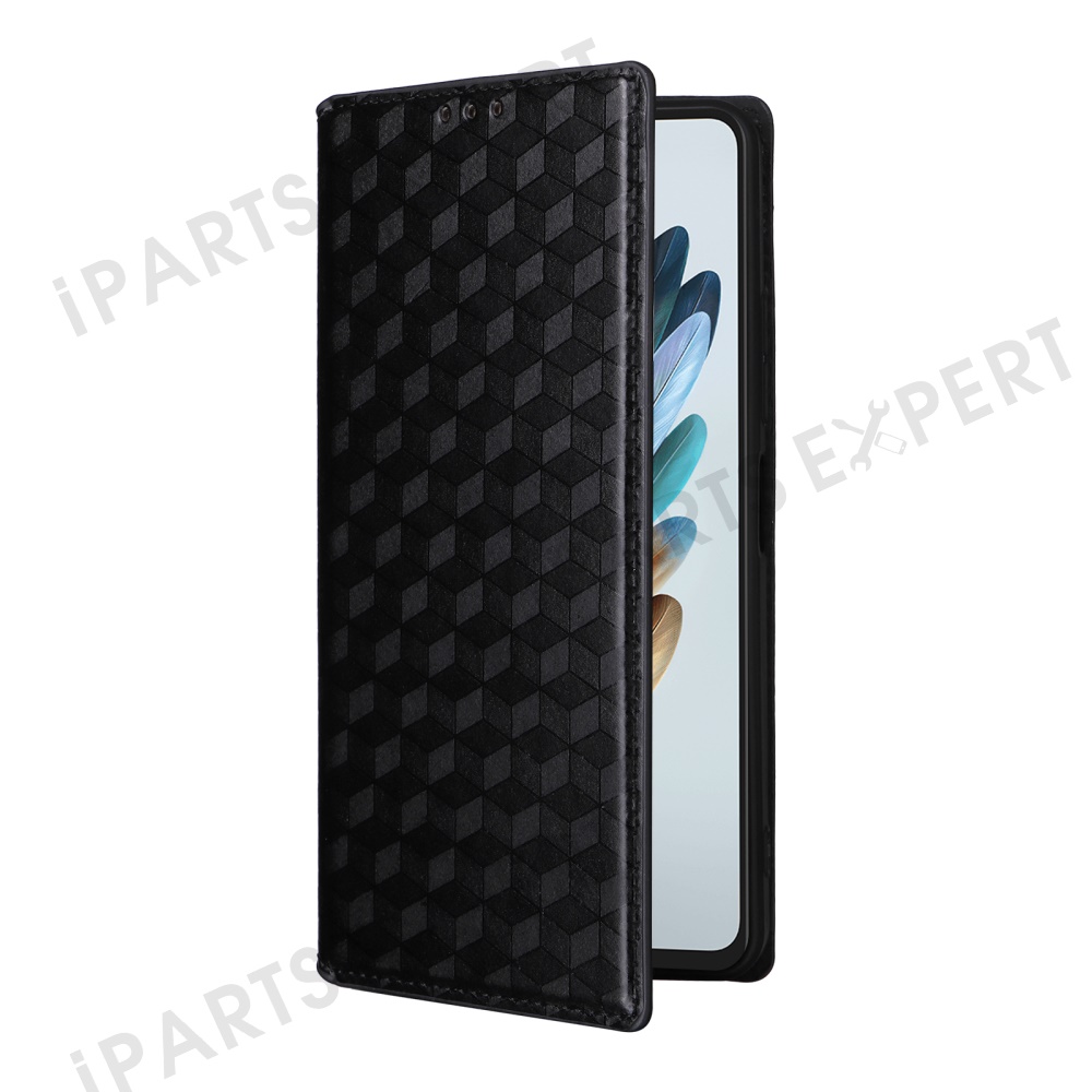 For ZTE nubia Music Wallet Case Rhombus Imprinted Leather Phone Cover - Black