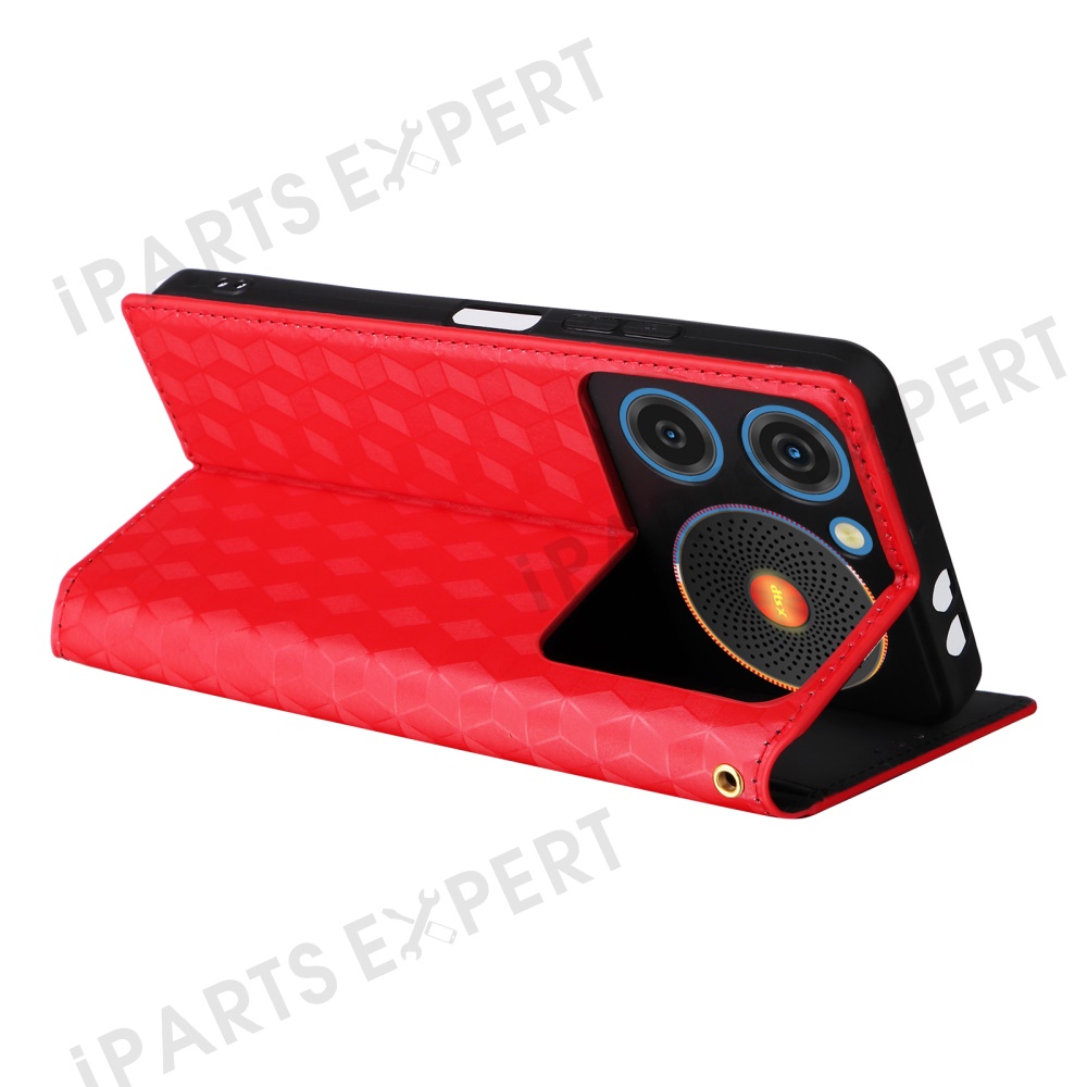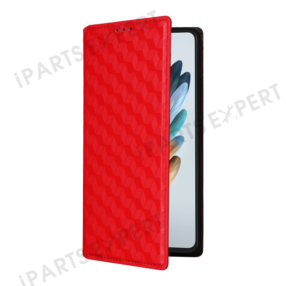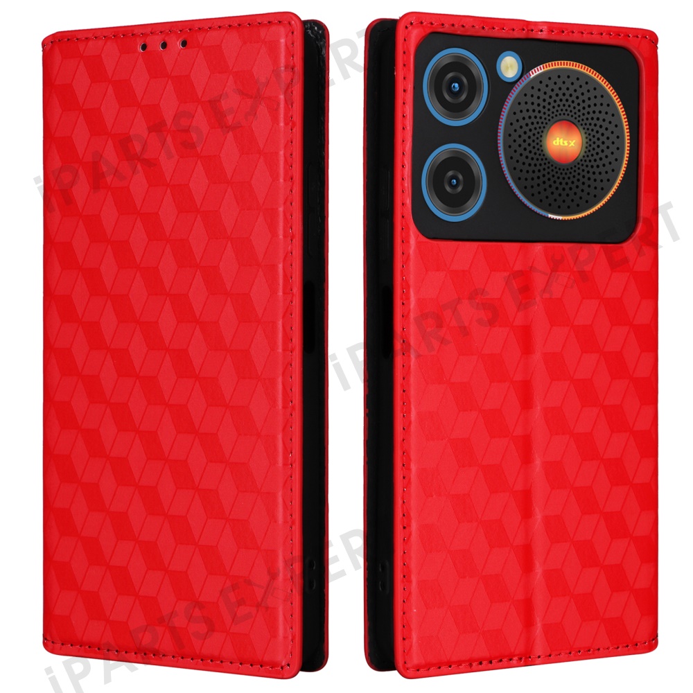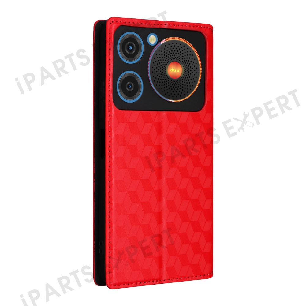 For ZTE nubia Music Wallet Case Rhombus Imprinted Leather Phone Cover - Red
