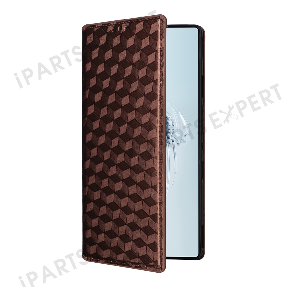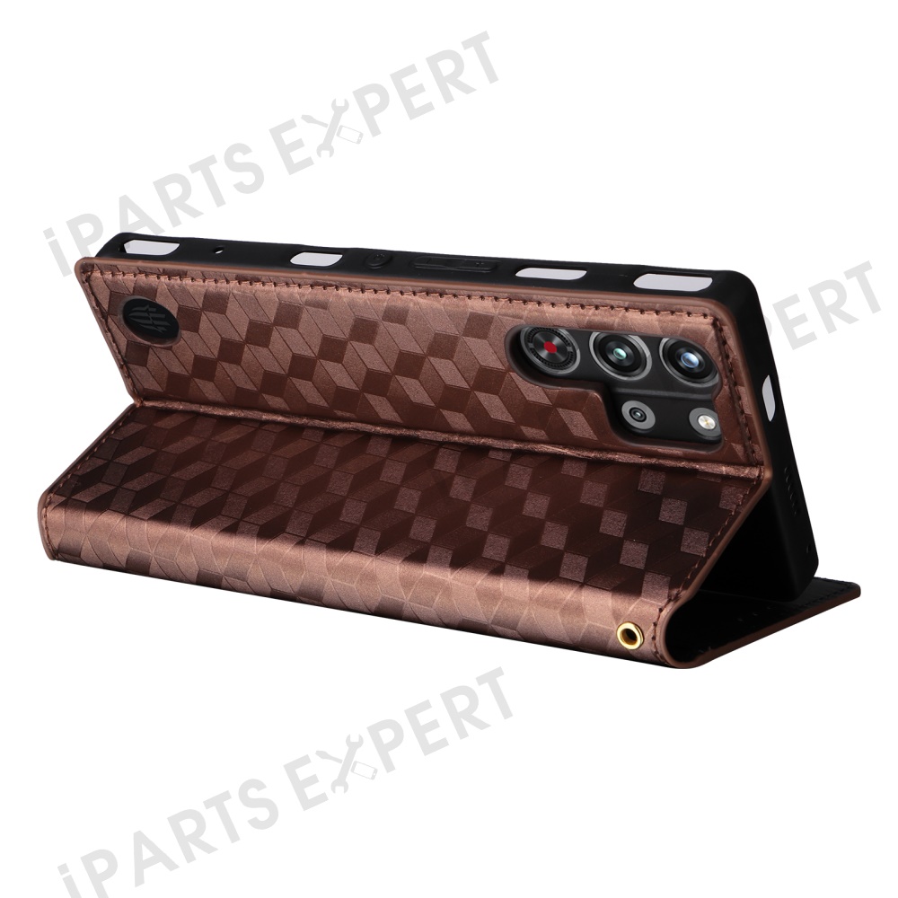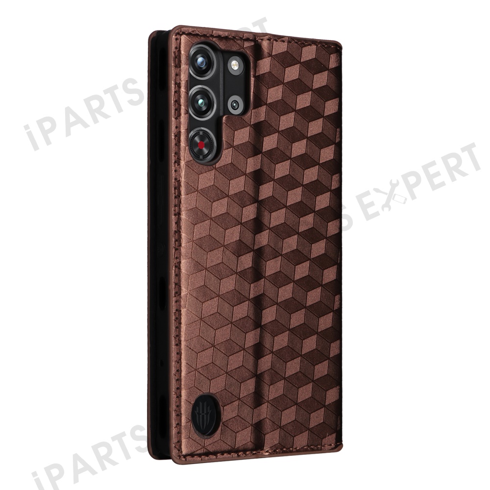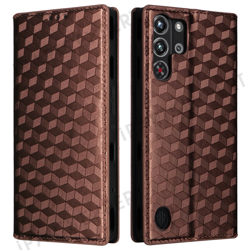 For ZTE nubia Red Magic 10 Pro 5G / 10 Pro+ 5G Wallet Case Rhombus Imprinted Leather Phone Cover - Brown