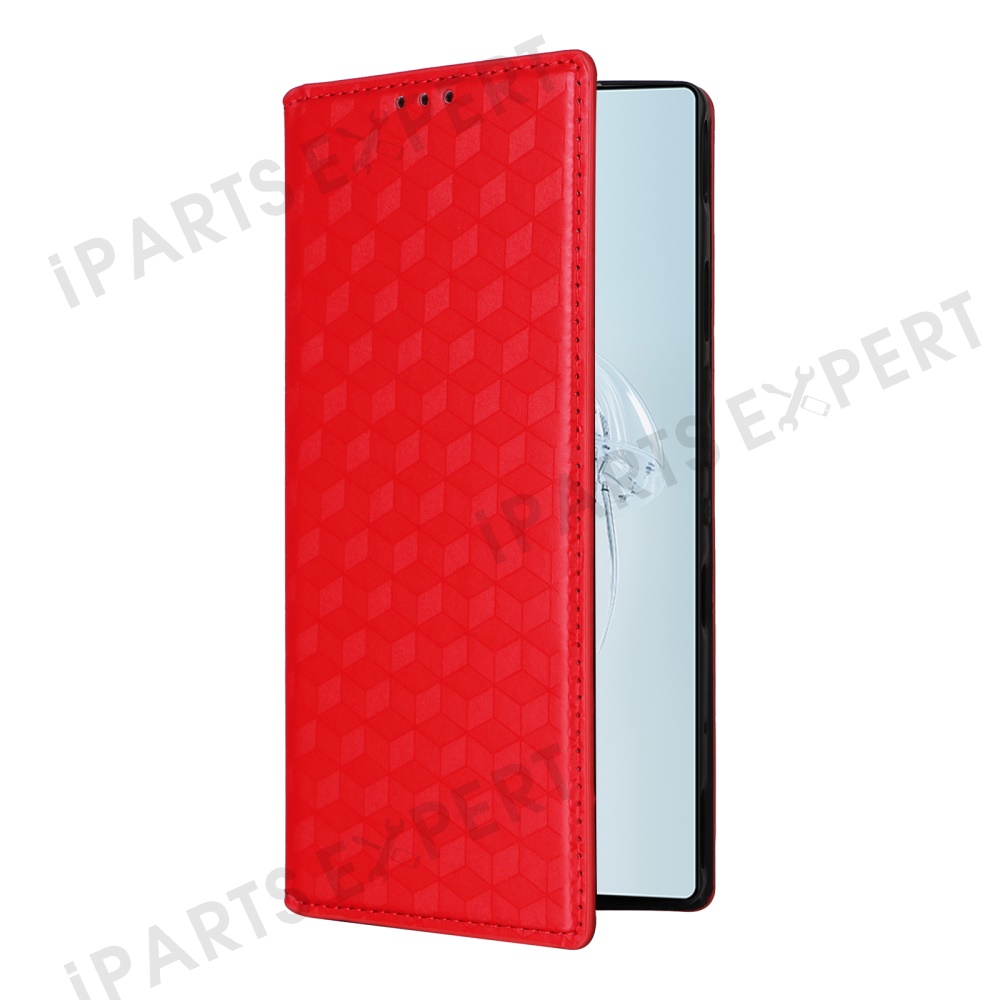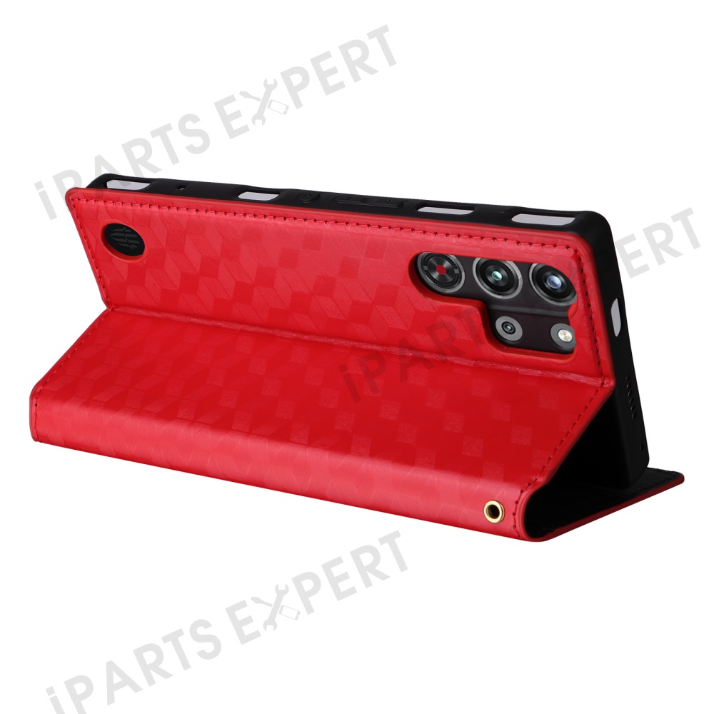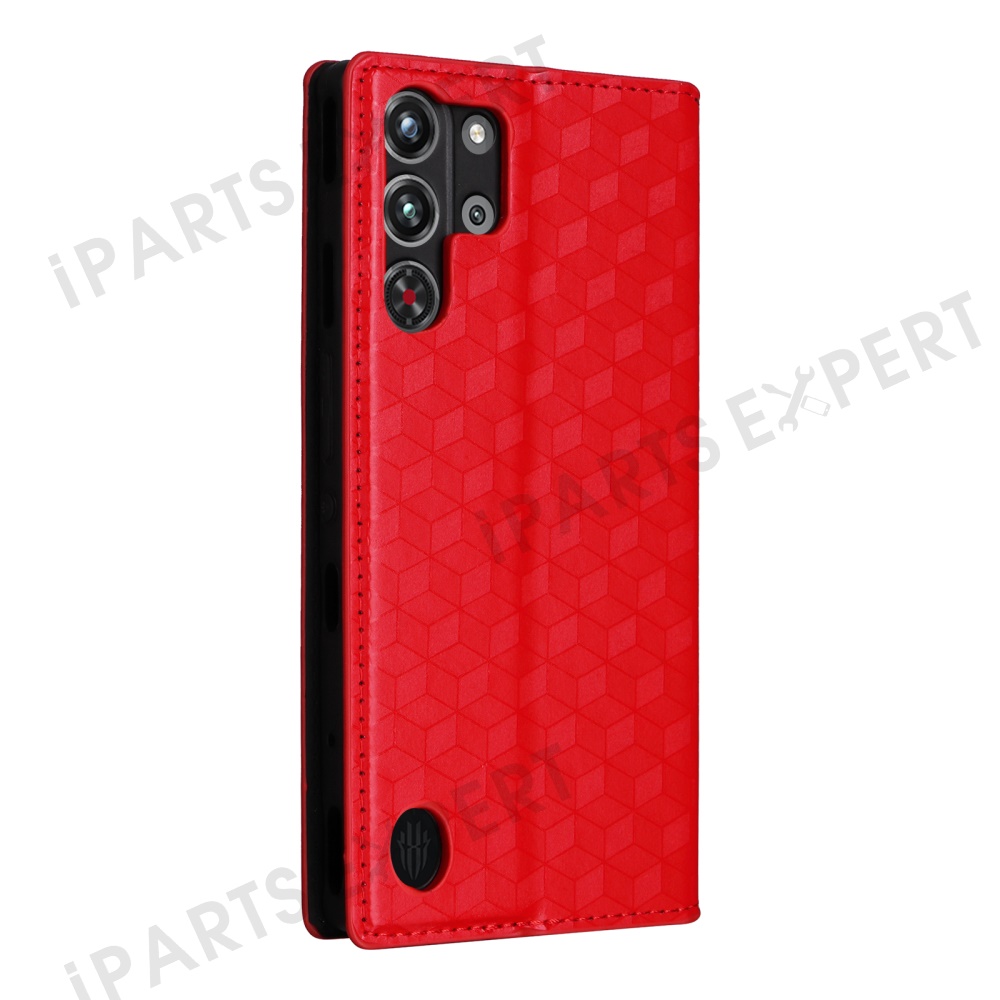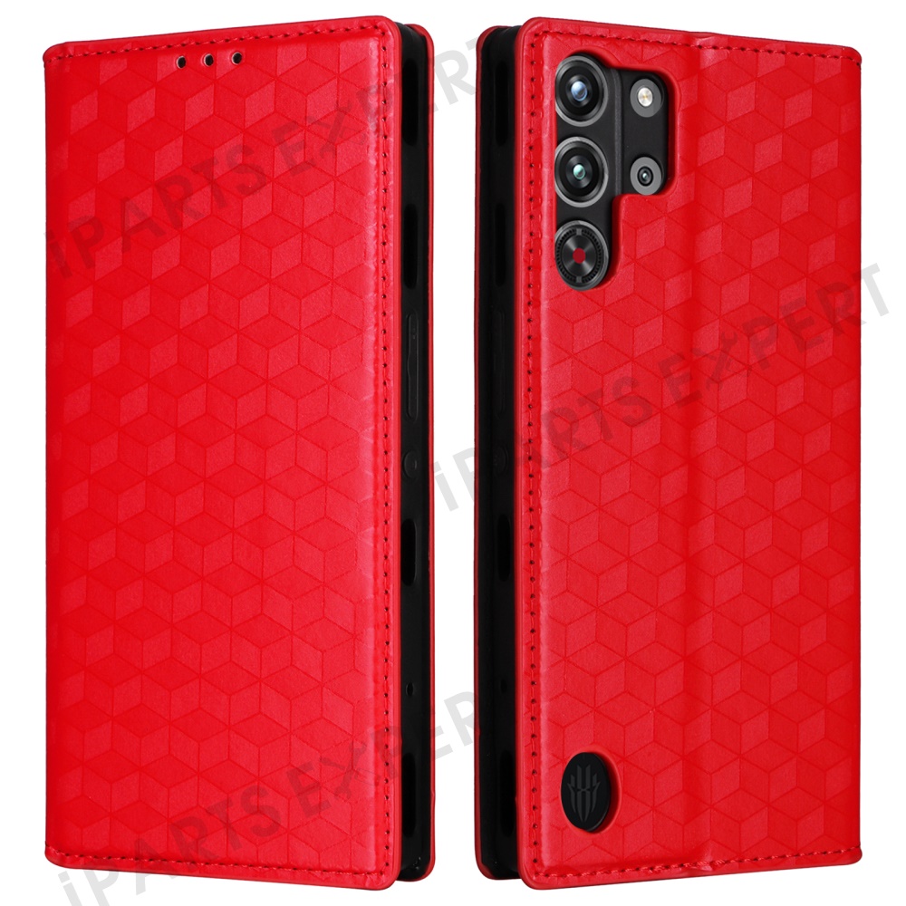 For ZTE nubia Red Magic 10 Pro 5G / 10 Pro+ 5G Wallet Case Rhombus Imprinted Leather Phone Cover - Red