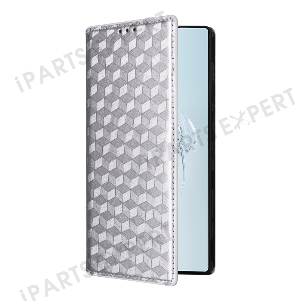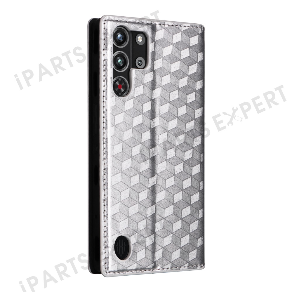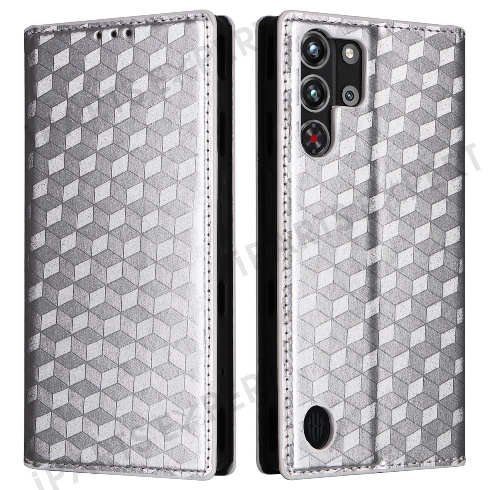 For ZTE nubia Red Magic 10 Pro 5G / 10 Pro+ 5G Wallet Case Rhombus Imprinted Leather Phone Cover - Silver