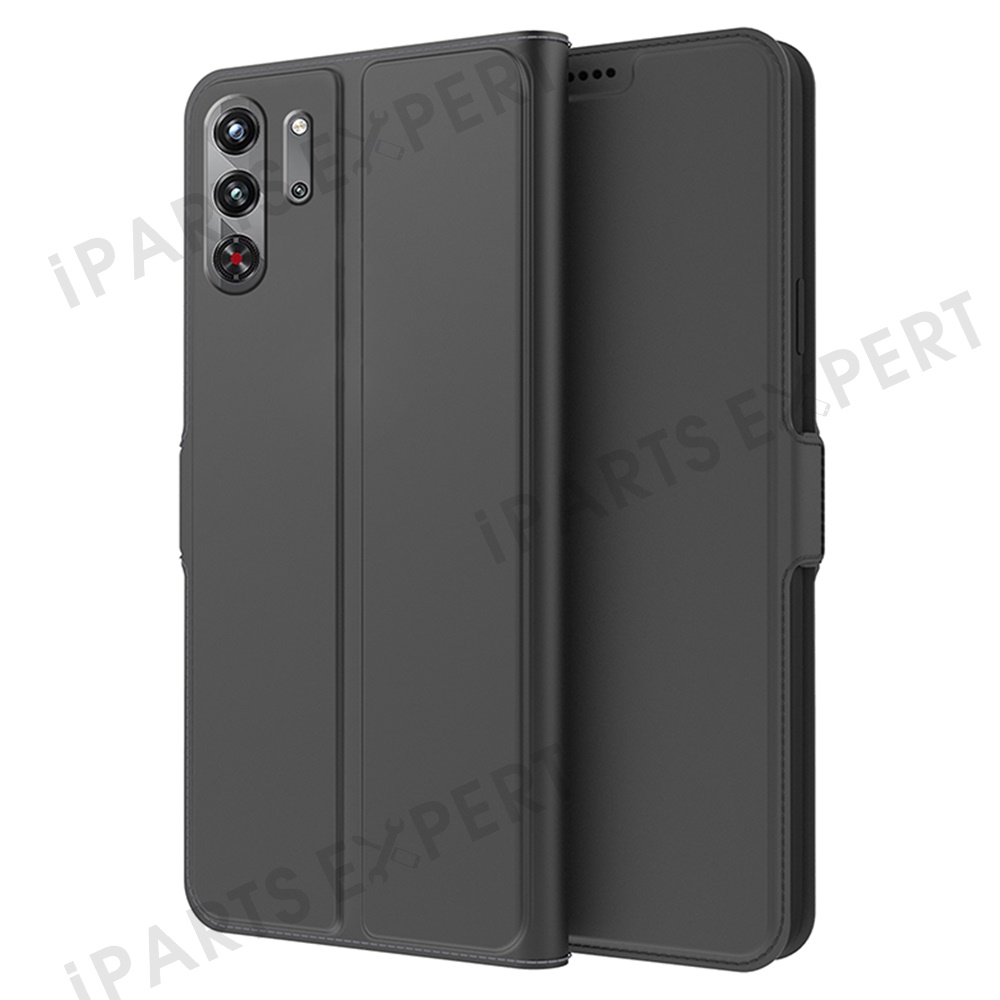 For ZTE nubia Red Magic 10 Pro 5G Case Shockproof TPU Inner Shell Leather Phone Cover Card Slot - Black