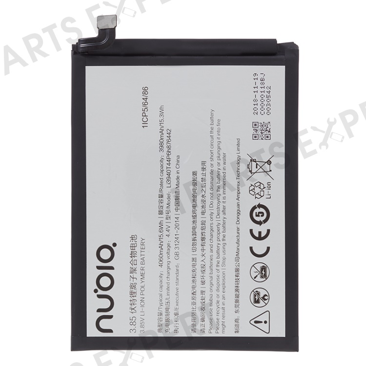 For ZTE nubia V18 3.85V 3980mAh Li-ion Battery Assembly Part (Encode: LI3940T44P6H876442) (without Logo)