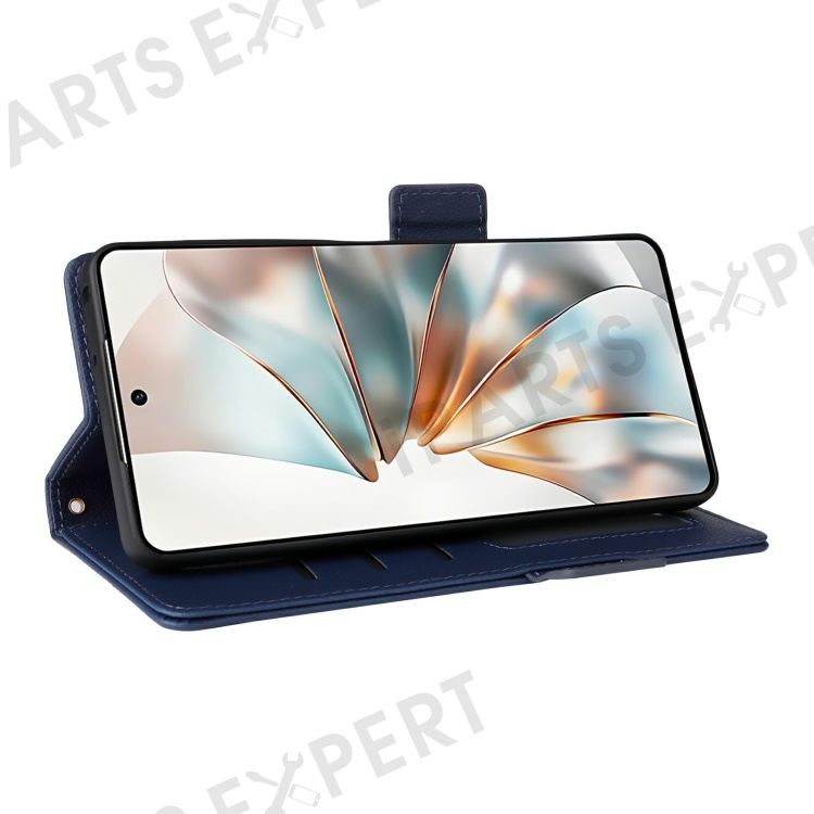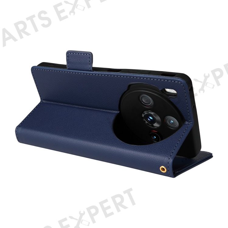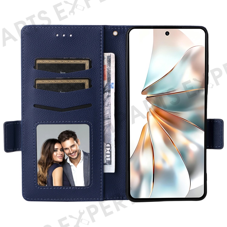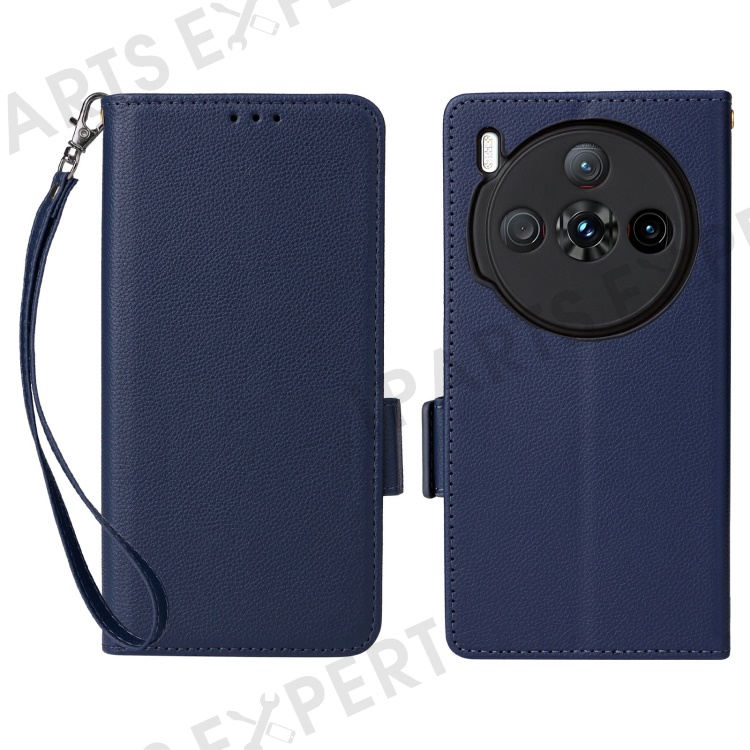 For ZTE nubia Z60S Pro 5G Case with Wrist Strap Litchi Texture PU Leather Wallet Phone Cover - Dark Blue