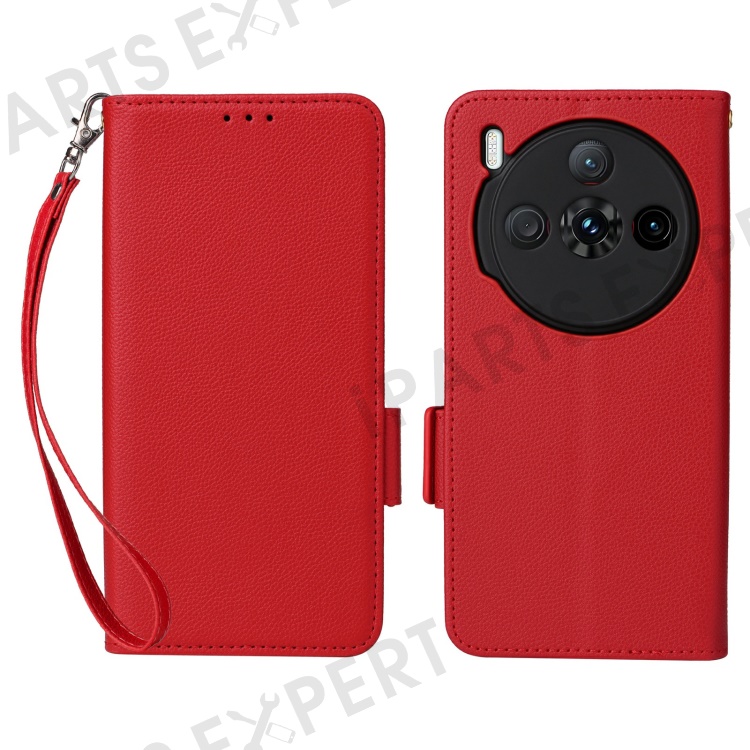 For ZTE nubia Z60S Pro 5G Case with Wrist Strap Litchi Texture PU Leather Wallet Phone Cover - Red