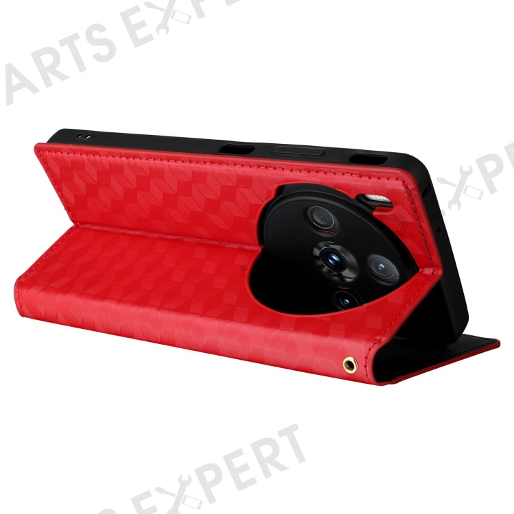 For ZTE nubia Z60S Pro 5G Wallet Case Rhombus Imprinted Leather Phone Cover - Red