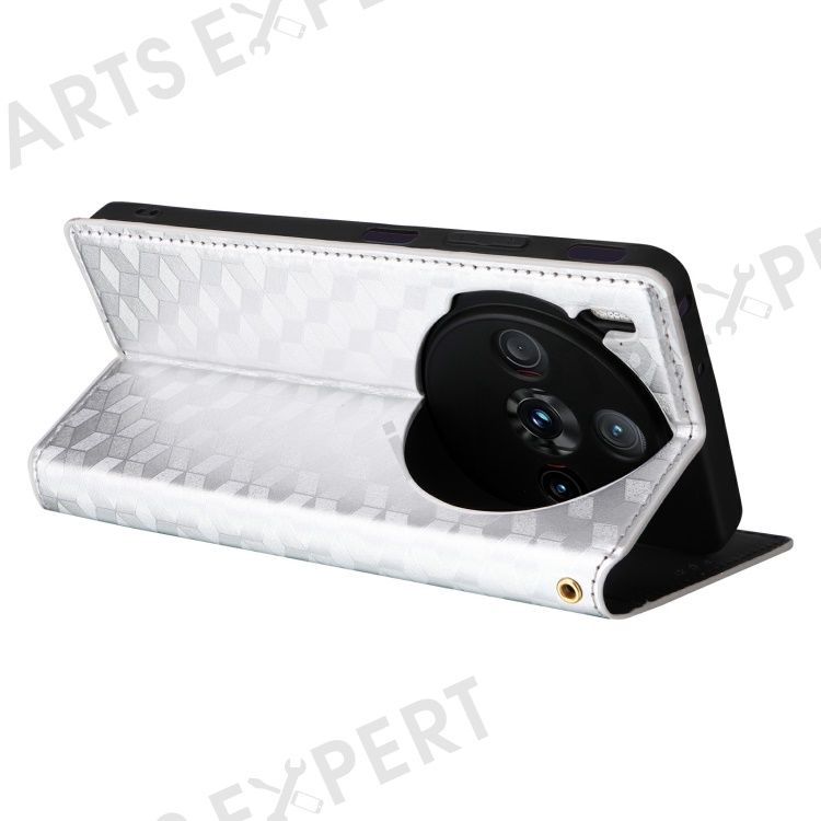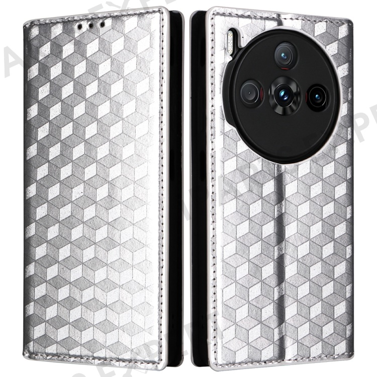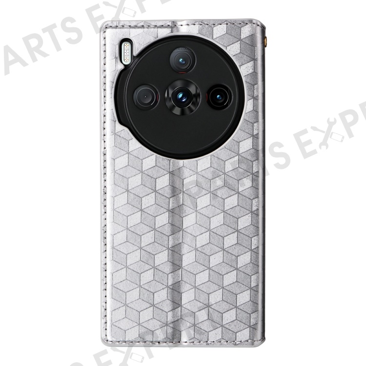 For ZTE nubia Z60S Pro 5G Wallet Case Rhombus Imprinted Leather Phone Cover - Silver