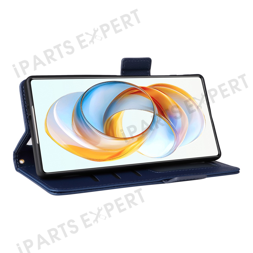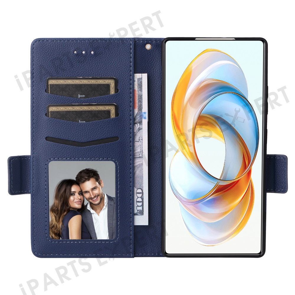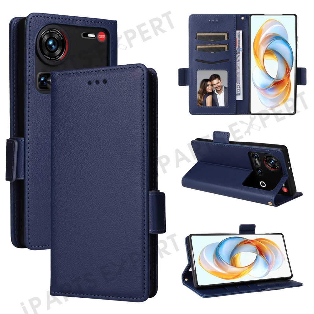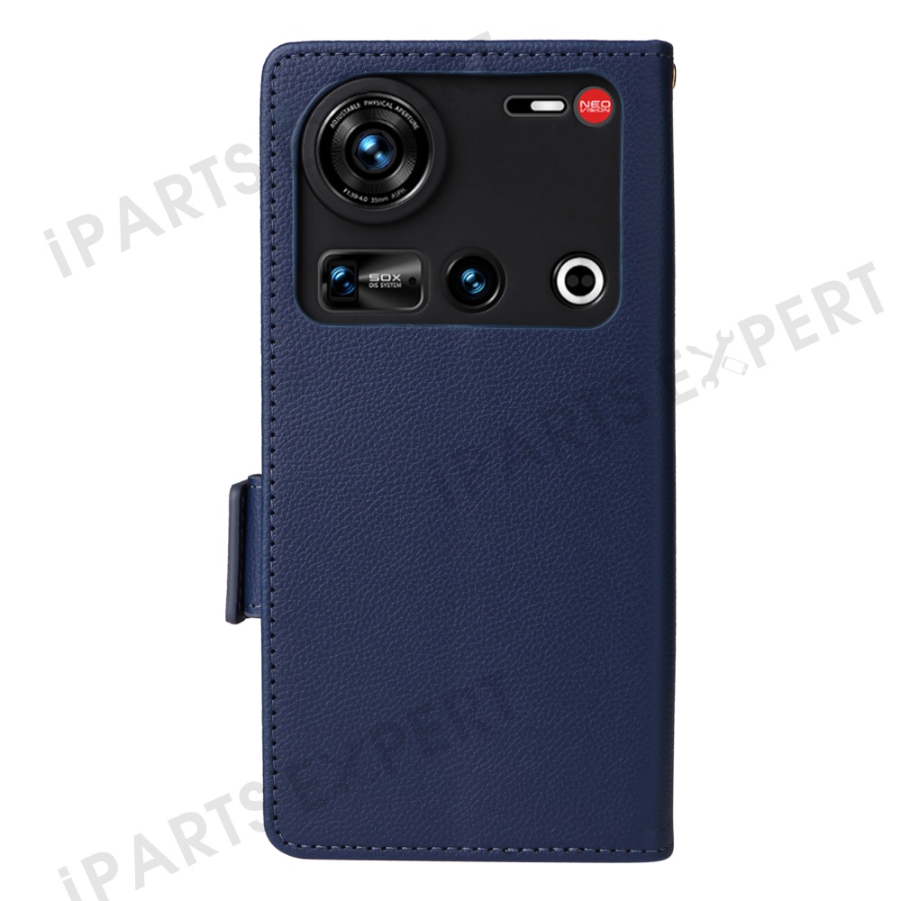 For ZTE nubia Z70S Ultra 5G / nubia Z70 Ultra 5G Case with Wrist Strap Litchi Texture PU Leather Wallet Phone Cover - Dark Blue