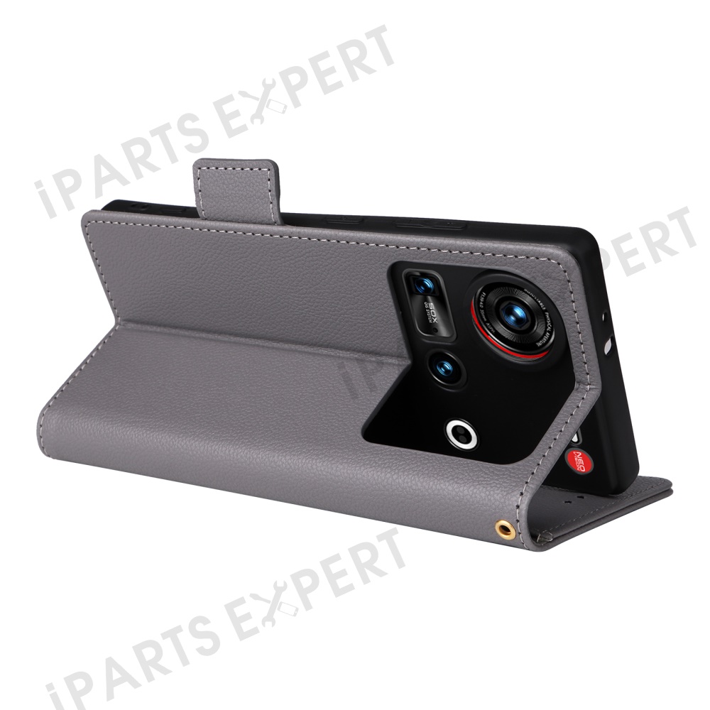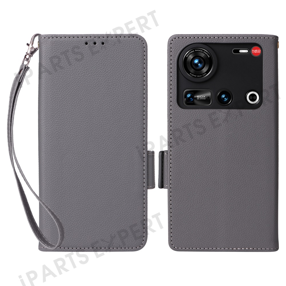For ZTE nubia Z70S Ultra 5G / nubia Z70 Ultra 5G Case with Wrist Strap Litchi Texture PU Leather Wallet Phone Cover - Grey