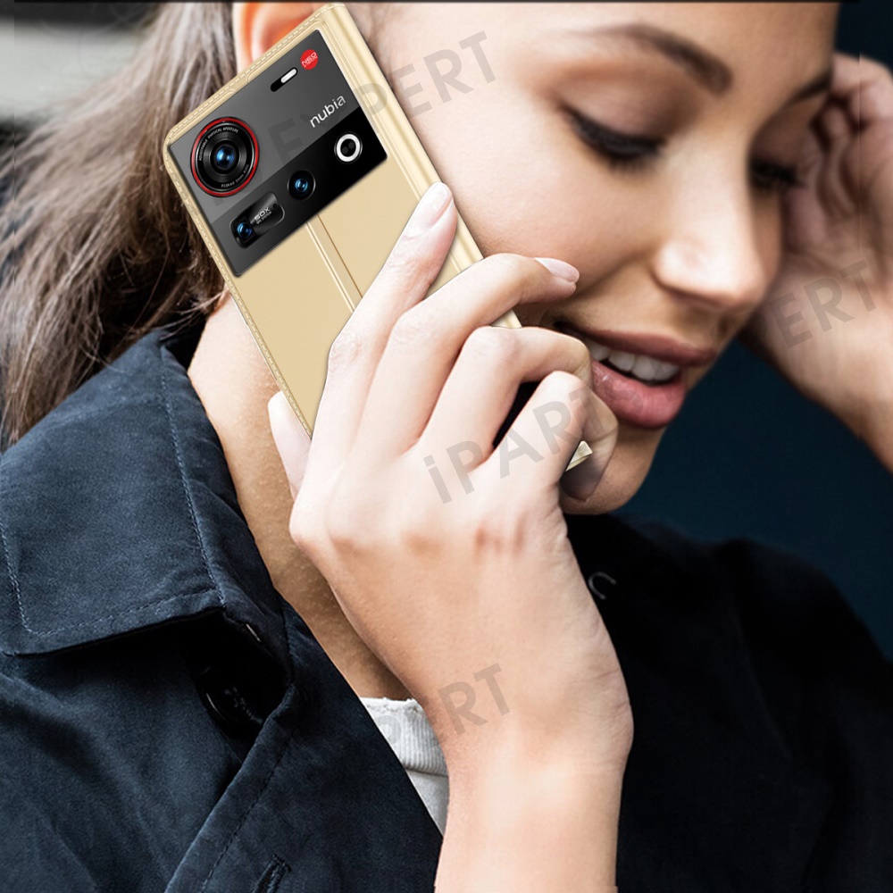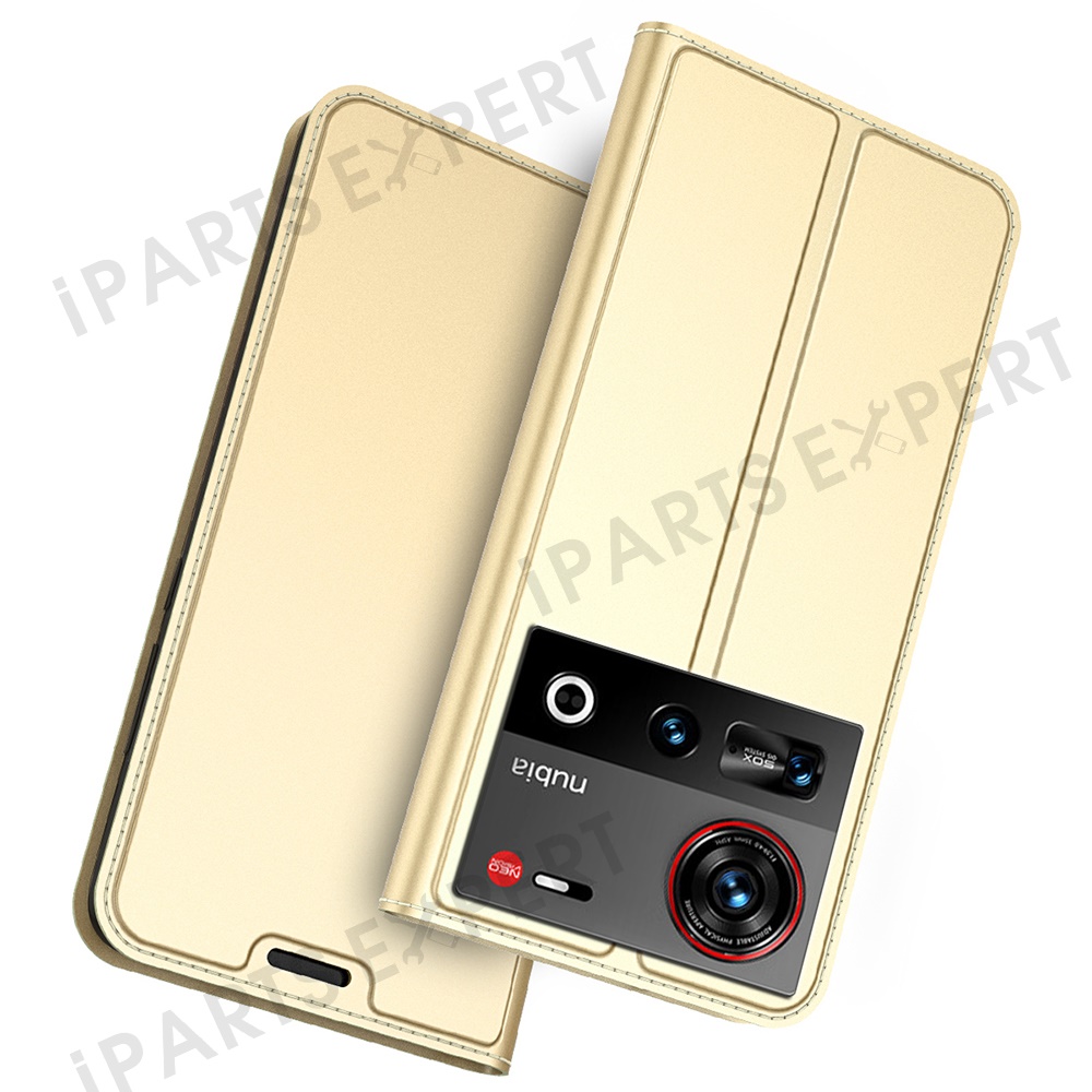 For ZTE nubia Z70 Ultra 5G Case PU Leather Phone Cover with Card Holder Stand Magnetic Closure - Gold
