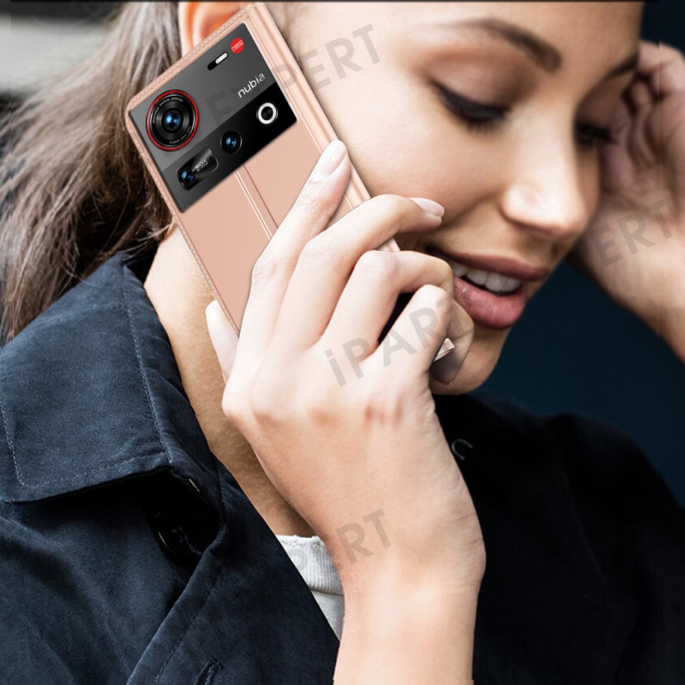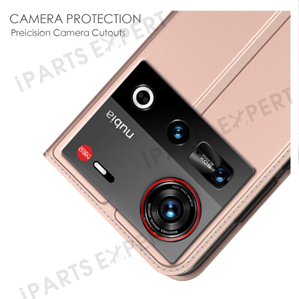 For ZTE nubia Z70 Ultra 5G Case PU Leather Phone Cover with Card Holder Stand Magnetic Closure - Rose Gold