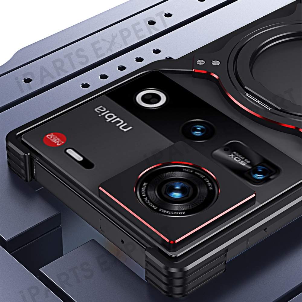 For ZTE nubia Z70 Ultra 5G Kickstand Case Metal Bumper Magnetic Phone Cover - Black / Blue