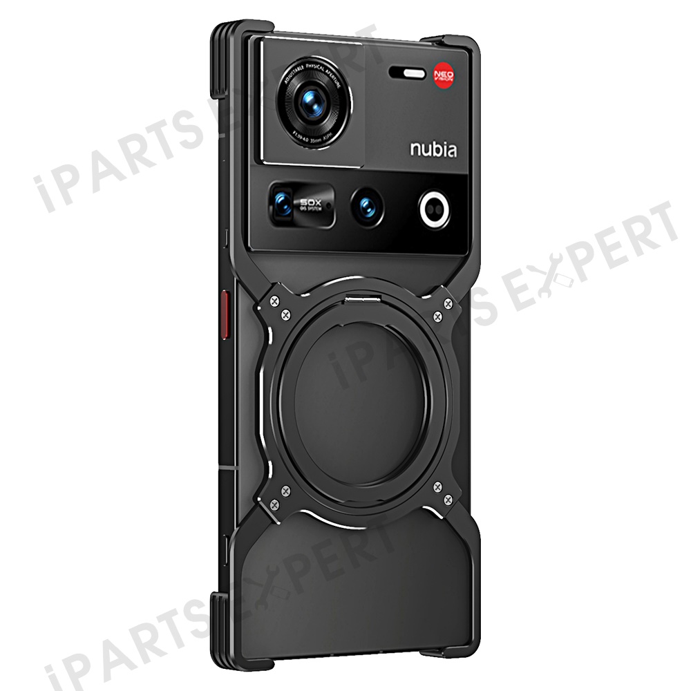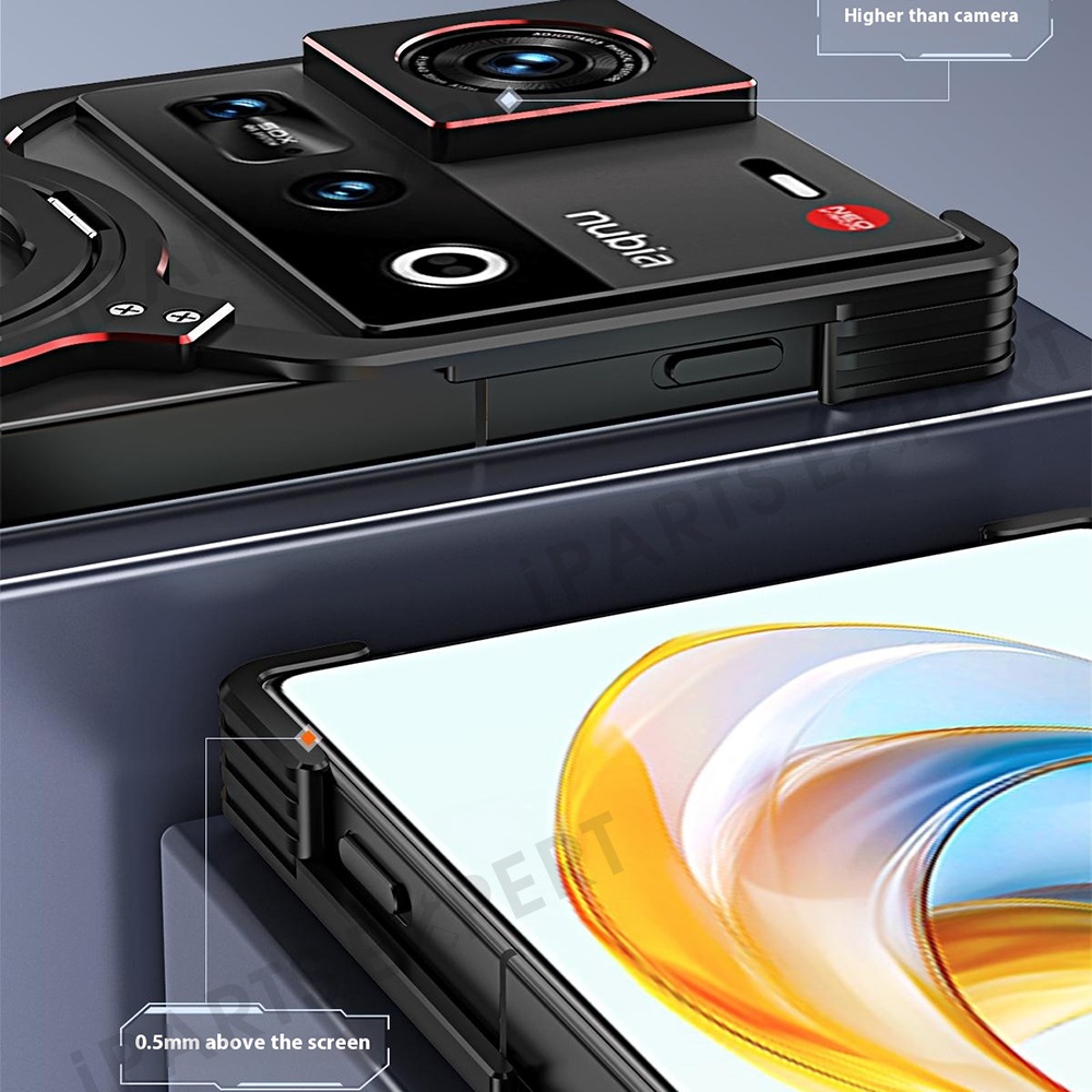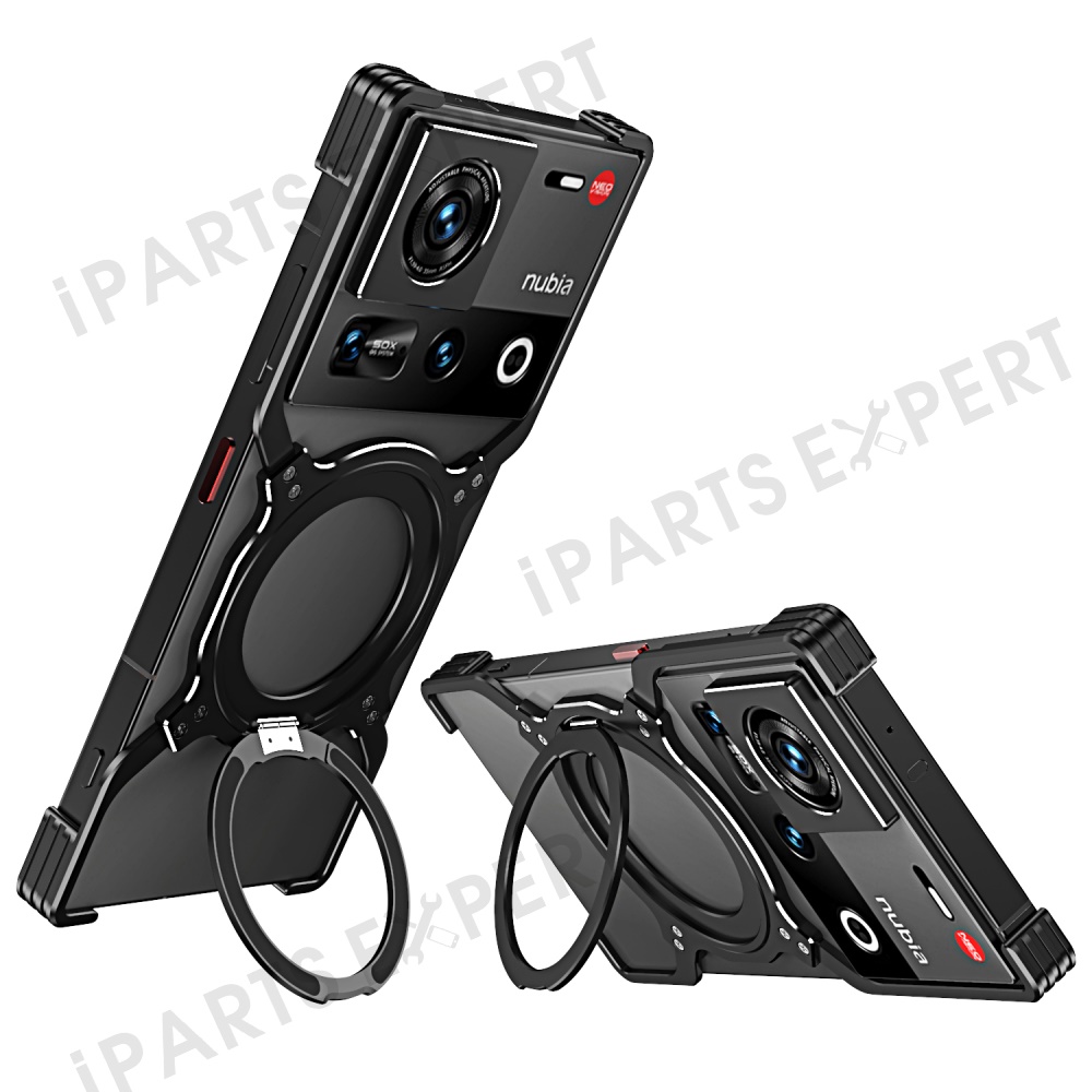 For ZTE nubia Z70 Ultra 5G Kickstand Case Metal Bumper Magnetic Phone Cover - Black / Silver