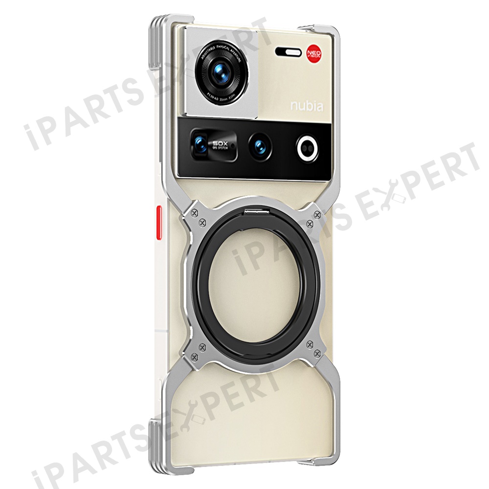 For ZTE nubia Z70 Ultra 5G Kickstand Case Metal Bumper Magnetic Phone Cover - Silver / Silver