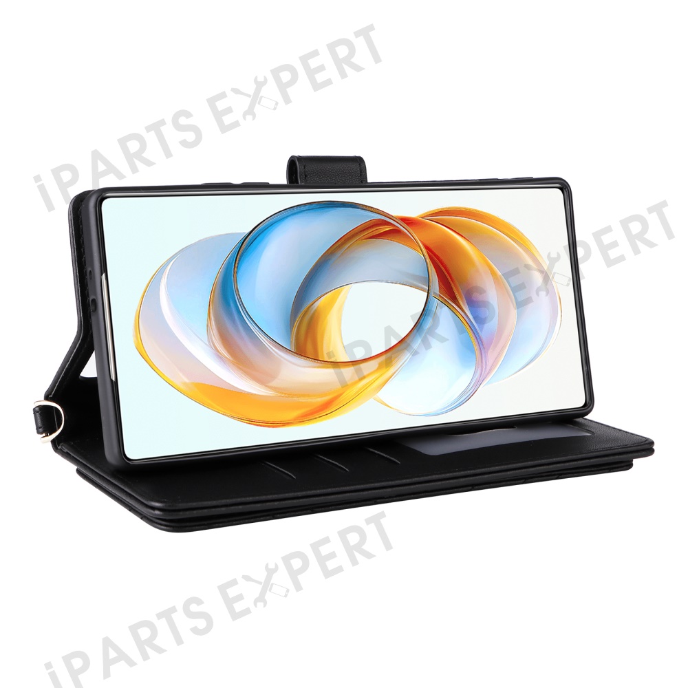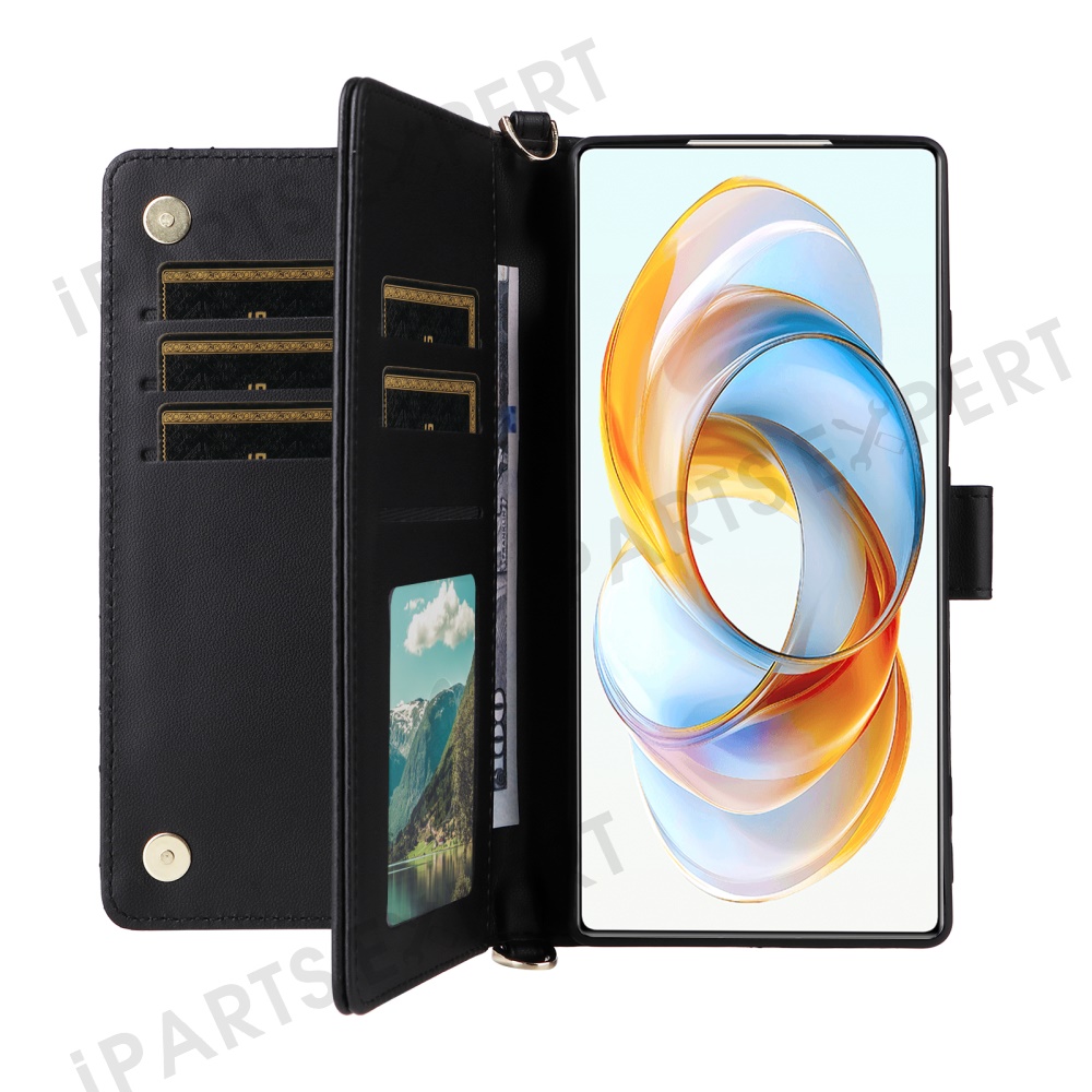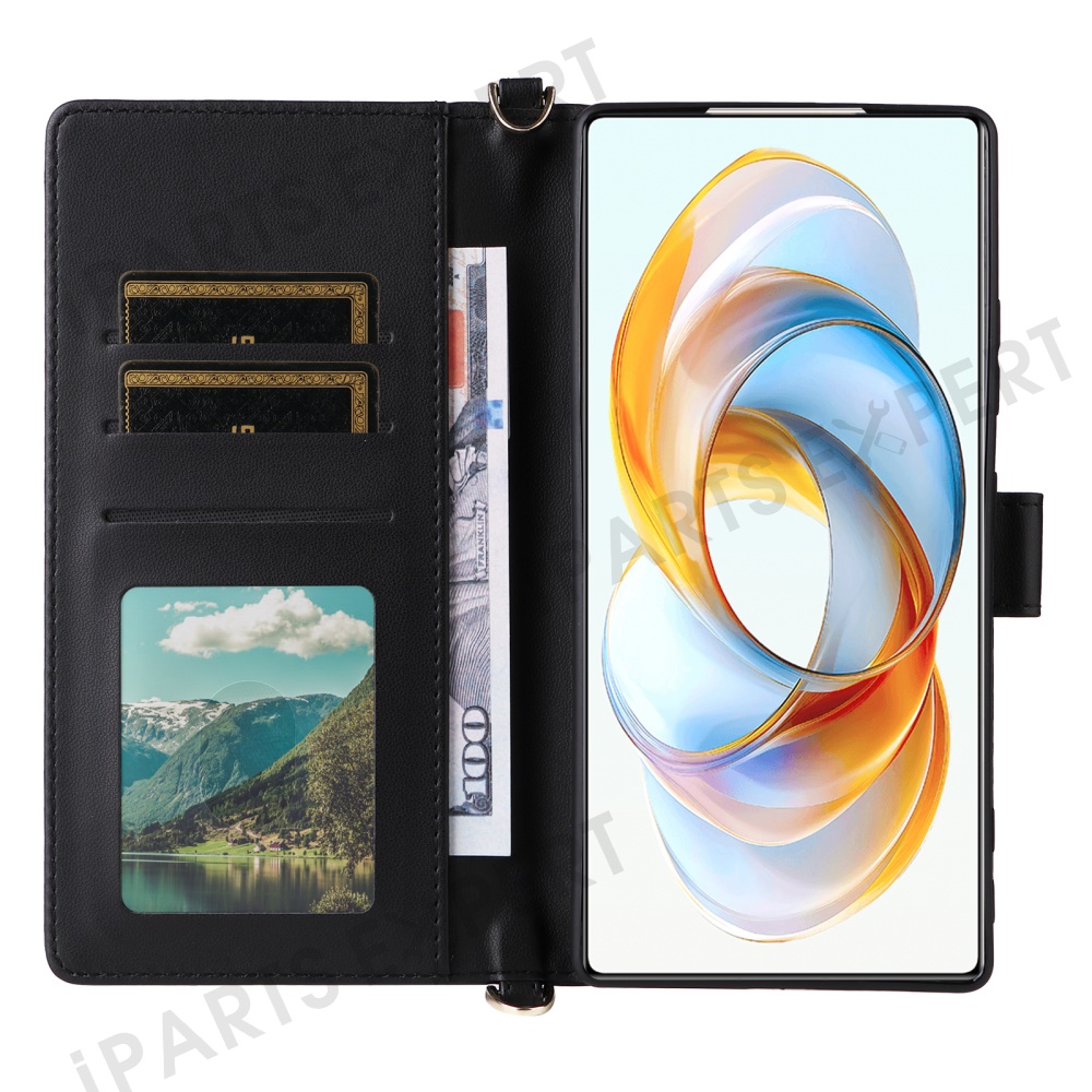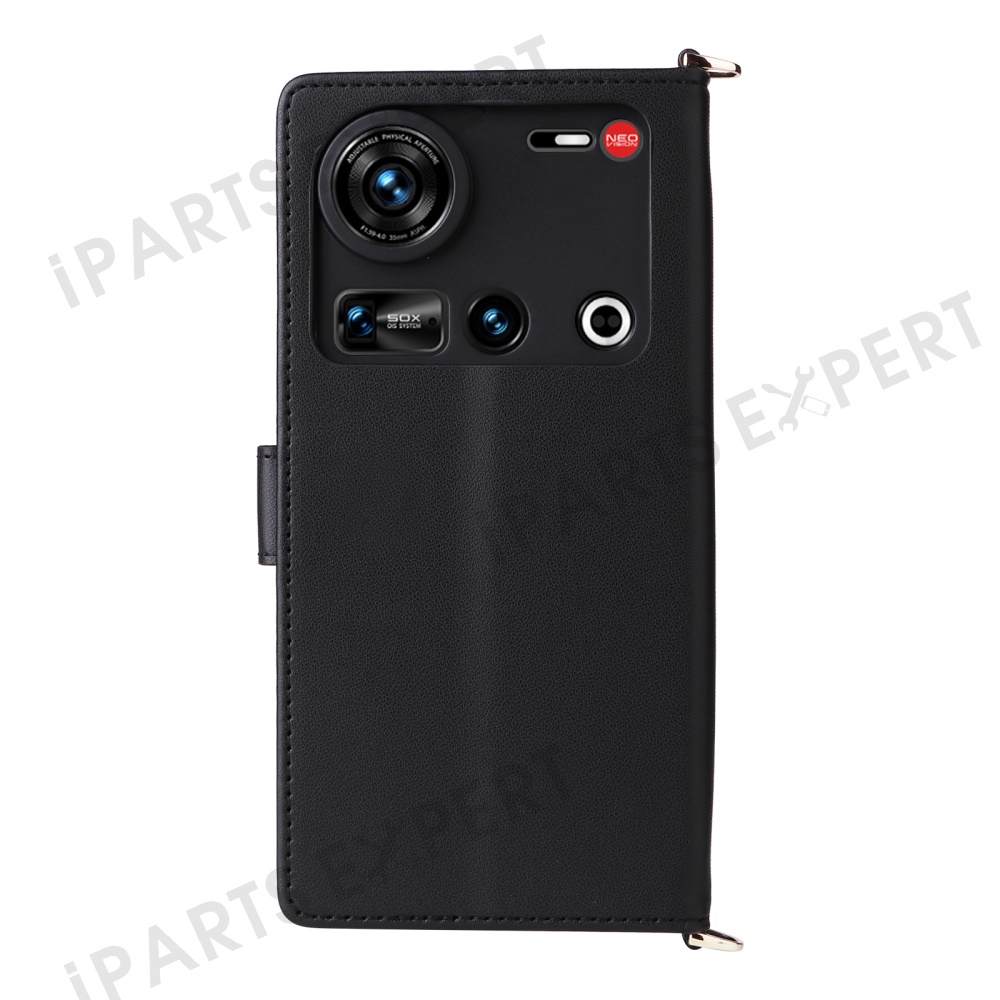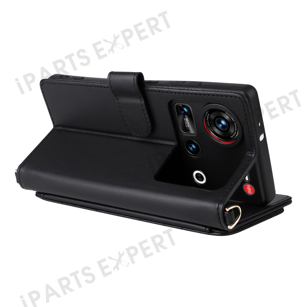 For ZTE nubia Z70S Ultra 5G / nubia Z70 Ultra 5G Wallet Case with Shoulder / Wrist Strap Leather Phone Cover Stand - Black