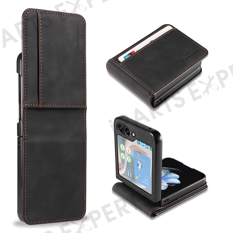 FORWENW Fantasy Series for Samsung Galaxy Z Flip5 5G Case Skin-touch Card Holder Phone Cover - Black