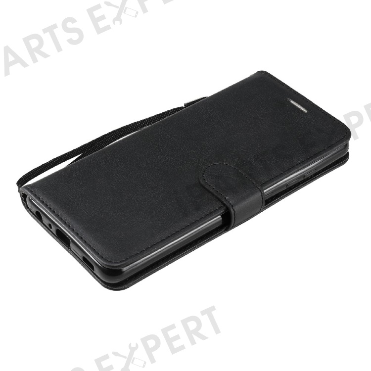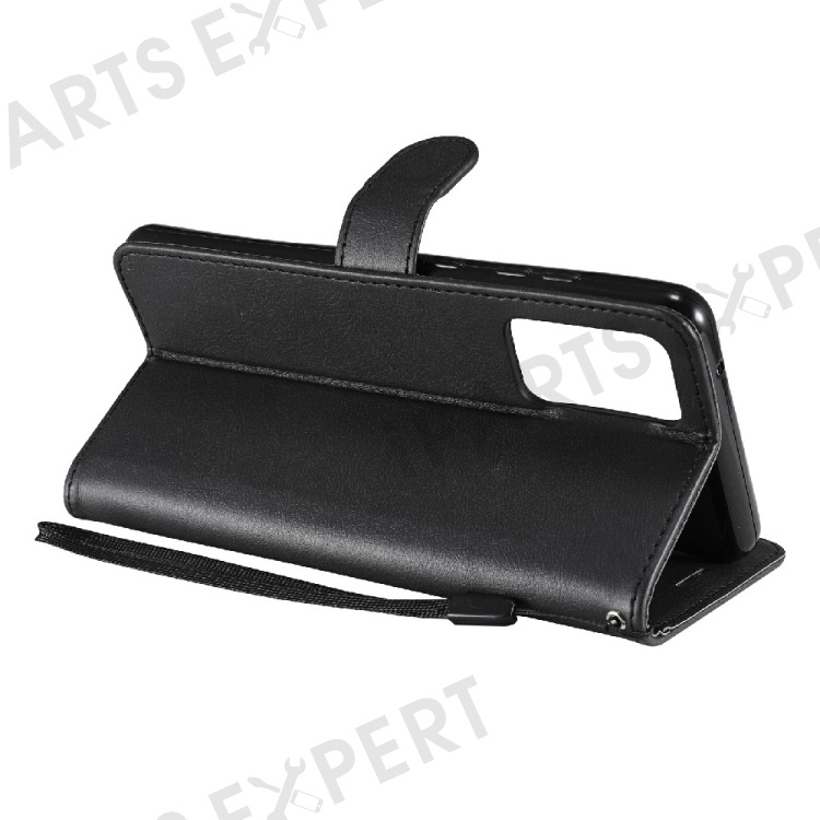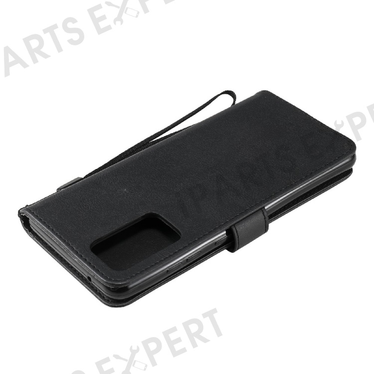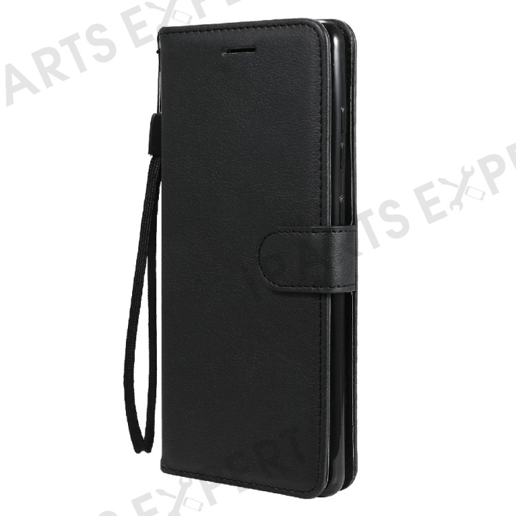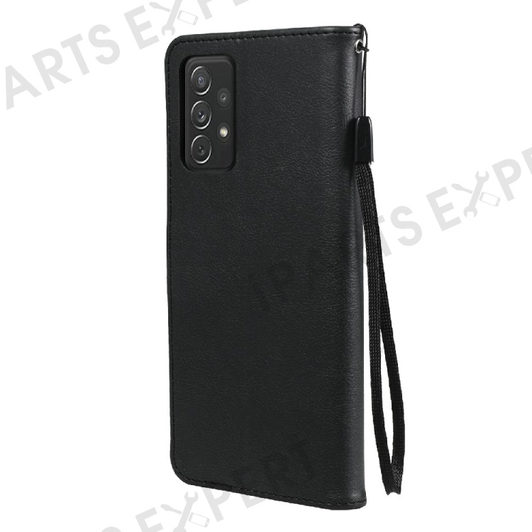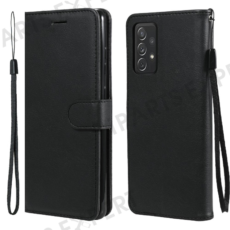 For Samsung Galaxy A72 4G / 5G Case Solid Color Leather Mobile Cover Wallet Stand with Strap - Black