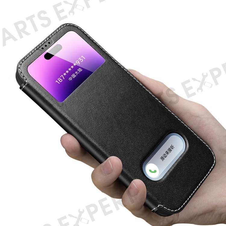 Made of premium Genuine Cowhide Leather with exquisite workmanship, the case offers an elegant look, good hand feeling, and long durability. It featured with dual-window for viewing information/answering or rejecting phone calls. A foldable stand supports a comfortable viewing, definitely making video watching more enjoyable.