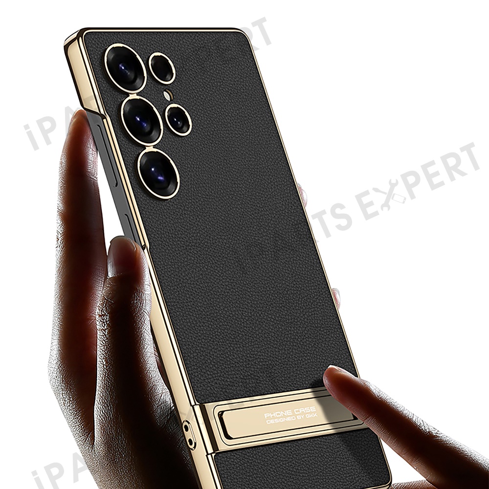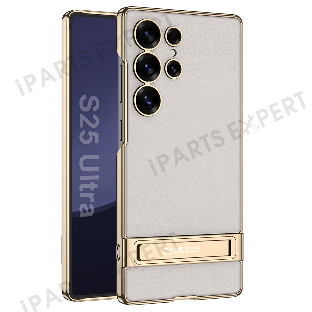 GKK For Samsung Galaxy S25 Ultra Case Electroplating Kickstand PU Hard PC Phone Back Cover - Titanium Grey