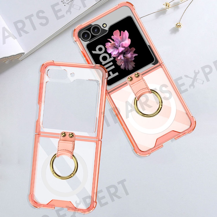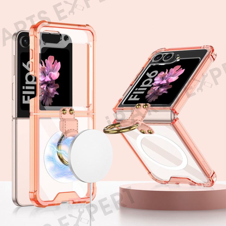 GKK For Samsung Galaxy Z Flip7 FE 5G / Z Flip6 5G Case Ring Kickstand TPU Phone Cover Magnetic Case - Transparent Orange