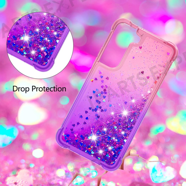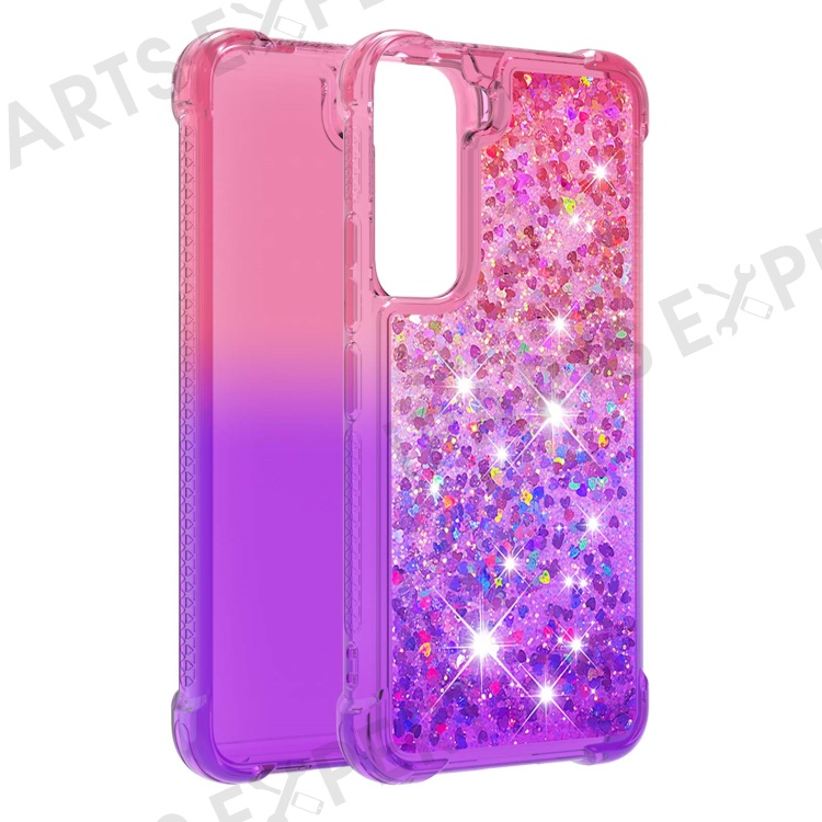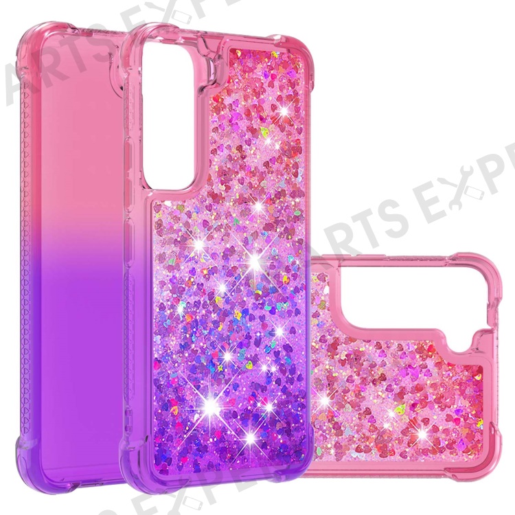 Gradient Quicksand Series Soft TPU Liquid Floating Protective Phone Case for Samsung Galaxy S22 5G - Pink/Purple
