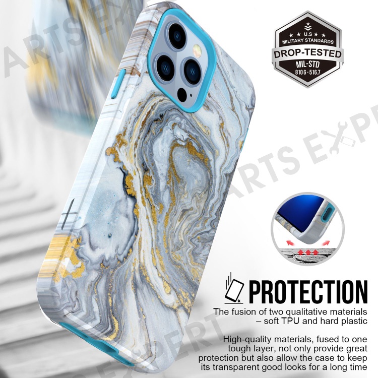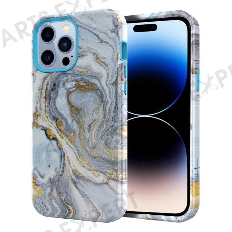 GW03 Hard PC + Soft TPU Hybrid Case for iPhone 14 Pro, Anti-scratch Stylish Pattern IMD Phone Cover Shell - 10022 Marble Pattern