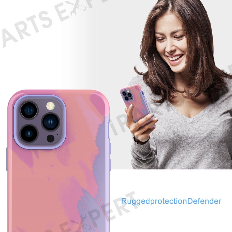 GW03 Hard PC + Soft TPU Hybrid Case for iPhone 14 Pro, Anti-scratch Stylish Pattern IMD Phone Cover Shell - 10042 Gradient Color
