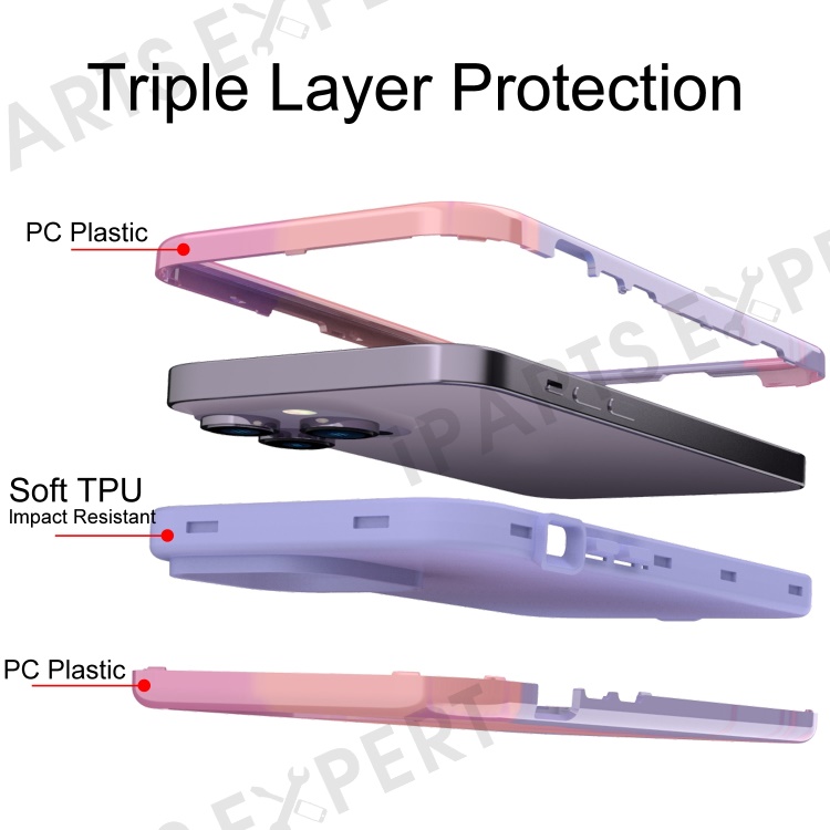 - The fusion of two premium materials: soft TPU and hard plastic, provide great protection