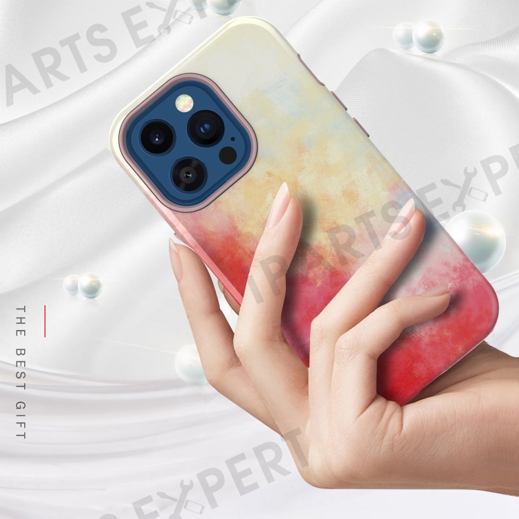 GW03 Hard PC + Soft TPU Hybrid Case for iPhone 14 Pro, Anti-scratch Stylish Pattern IMD Phone Cover Shell - 10044 Gradient Color