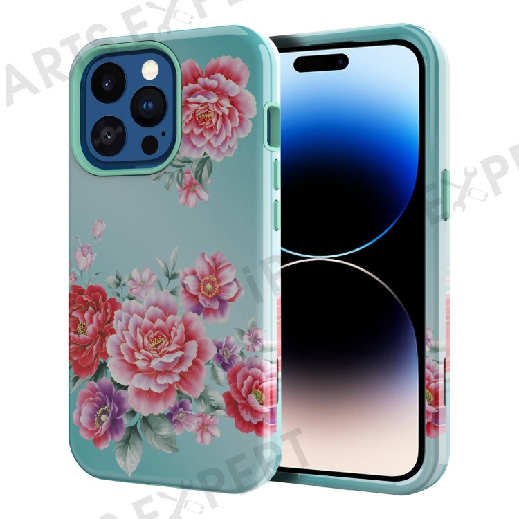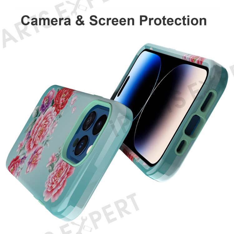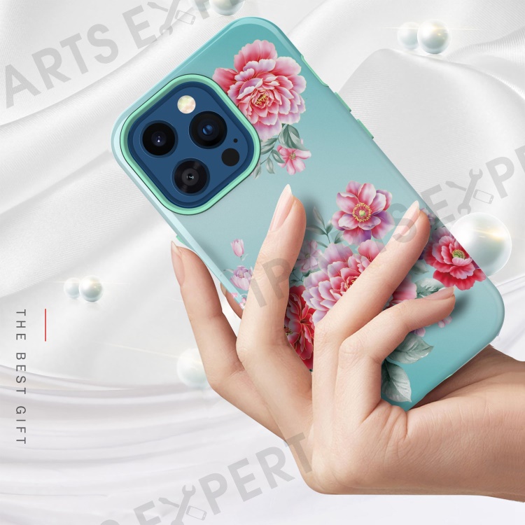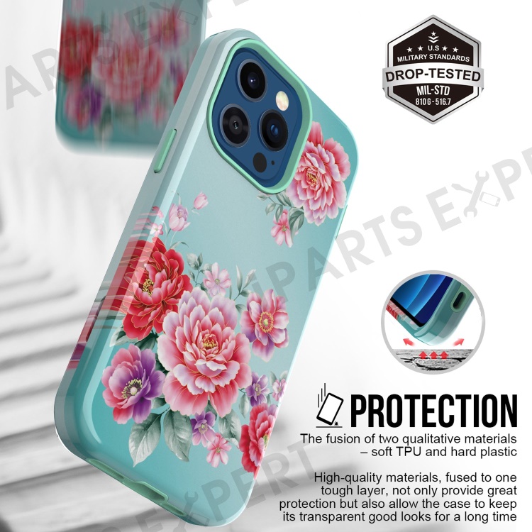 GW03 Hard PC + Soft TPU Hybrid Case for iPhone 14 Pro, Anti-scratch Stylish Pattern IMD Phone Cover Shell - 10045 Flower Pattern