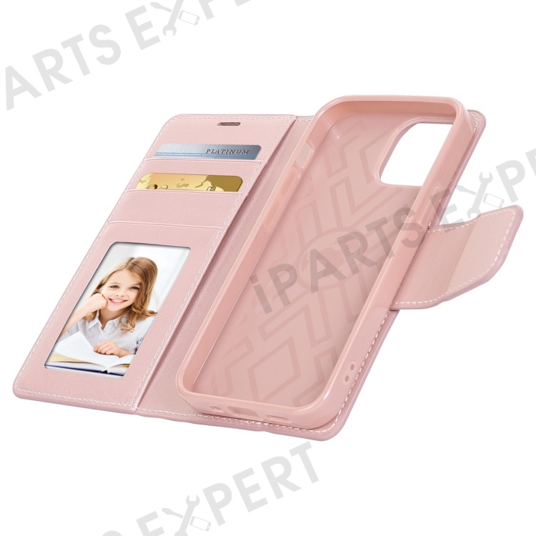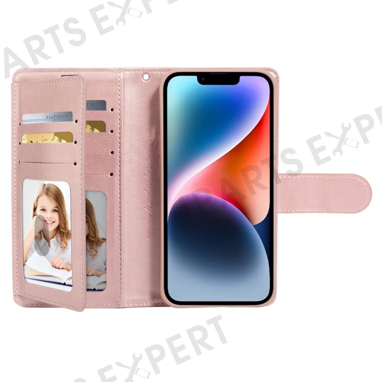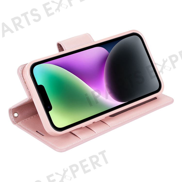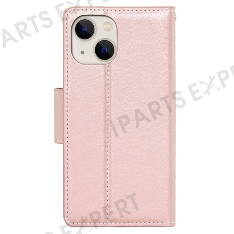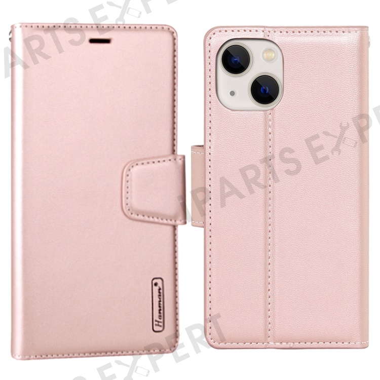 HANMAN Mill Series for iPhone 15 Plus PU Leather Mobile Phone Case Wallet Cell Phone Stand Cover - Rose Gold