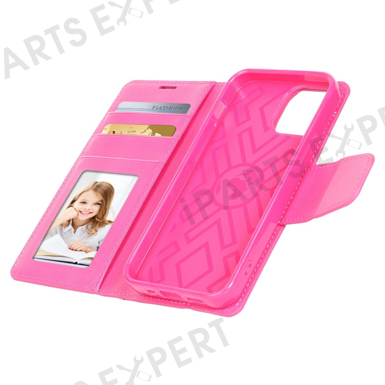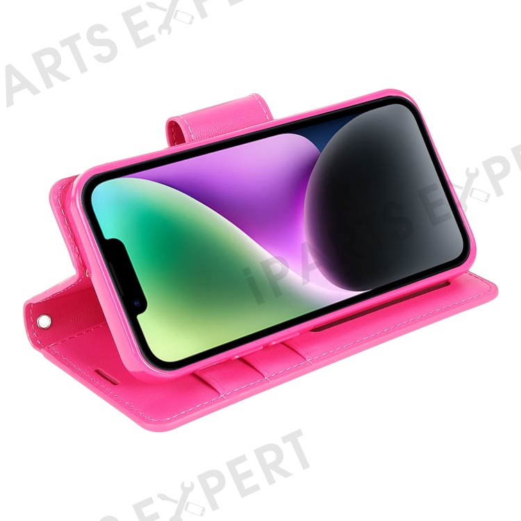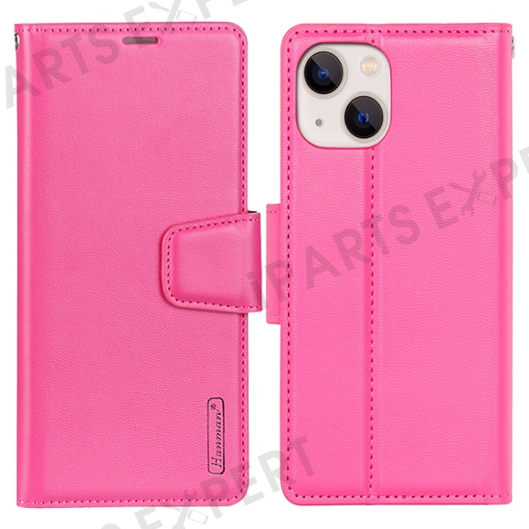 HANMAN Mill Series for iPhone 15 Plus PU Leather Mobile Phone Case Wallet Cell Phone Stand Cover - Rose