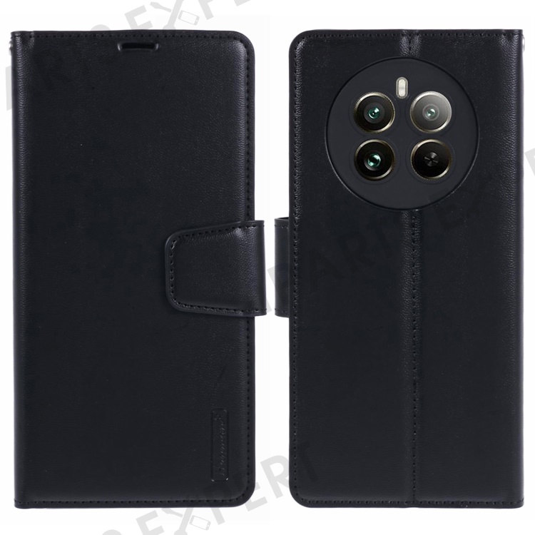 HANMAN Mill Series Phone Cover for Realme 12 4G / 12+ 5G Case PU Leather Wallet Phone Shell - Black