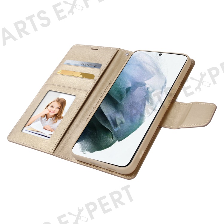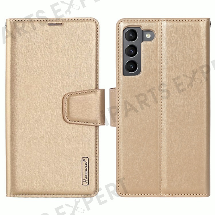 HANMAN Mill Series Phone Stand Case for Samsung Galaxy S23 PU Leather Wallet Phone Cover - Gold